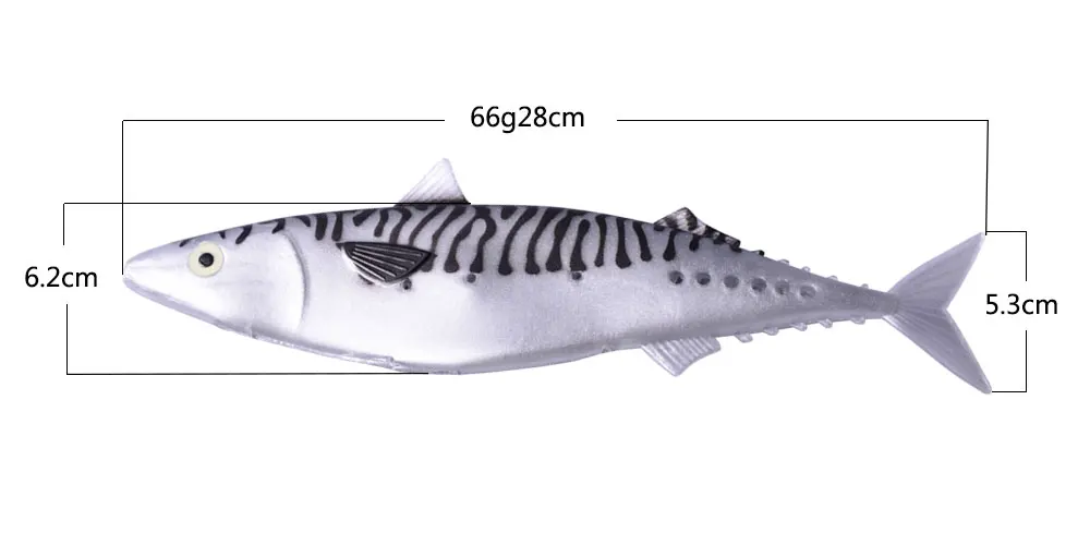 Señuelo de Pesca de Barco de Mar Profundo, Cebo de Silicona con el Estómago Vacío, Caballa, Cebo Suave de Goma, 66G, 28cm, Aparejos de Pesca, 1 ", 1", 66g