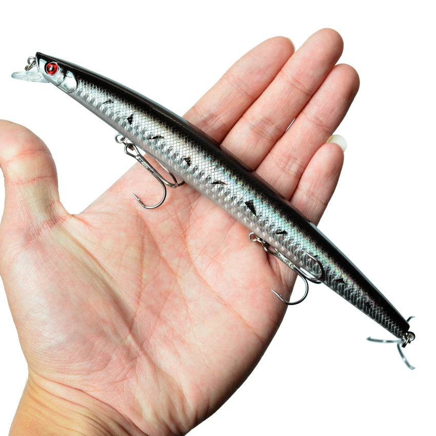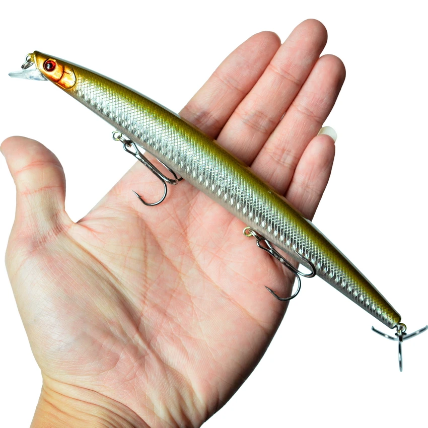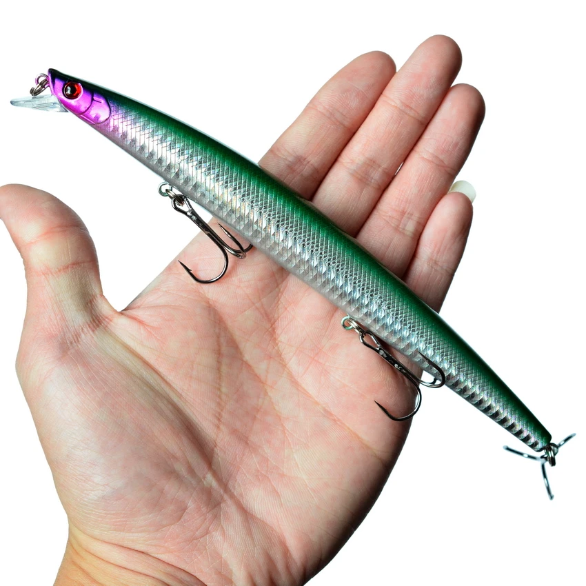 1 Uds. Señuelo de pesca Wobbler grande para lubina, pececillo, modelo mixto, cebo duro Artificial, 18cm, 24g, agua flotante, Wobbler de curricán de mar