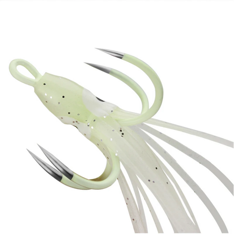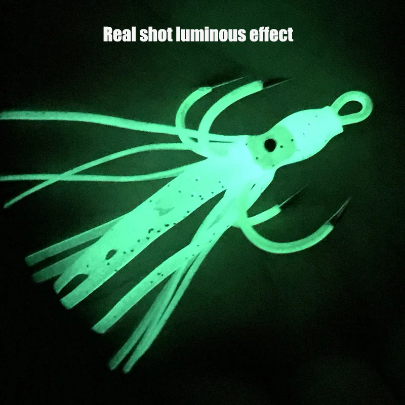 1 Uds. Señuelos luminosos de pulpo, faldas de calamar, cebo, señuelos de curricán suaves, faldas, plantilla de calamar de sepia, señuelos de pulpo que brillan en la oscuridad, 4 ganchos