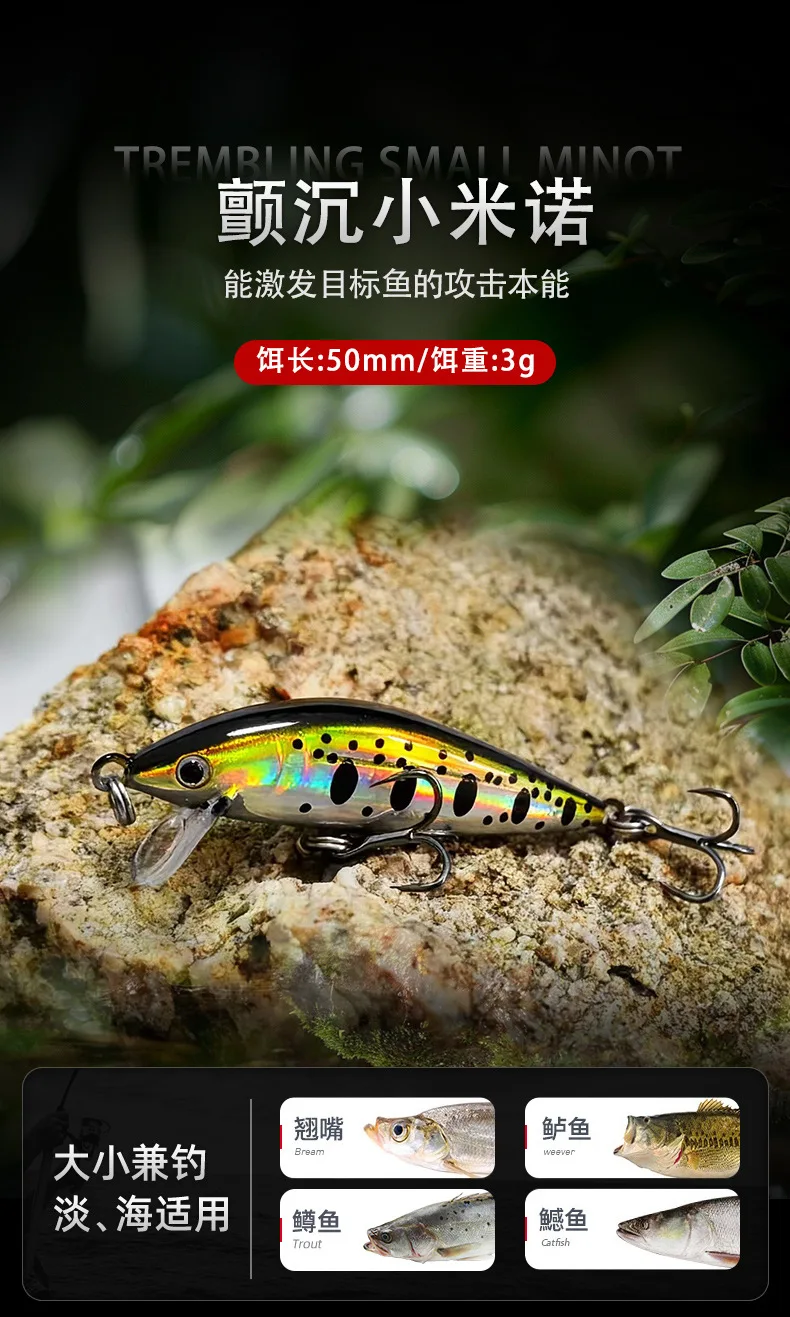 1 Uds. Señuelos pequeños señuelo de pesca 3g 50mm hundimiento Minnow Mini cebo duro cebo Artificial para perca trucha lubina