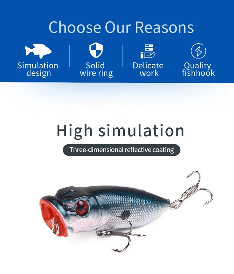 1 Uds. Señuelos de pesca con ojos 3D 6,5 cm 13g cebo Popper cebo duro Artificial Crankbait Jigbait Wobblers Lucio perca aparejos de pesca