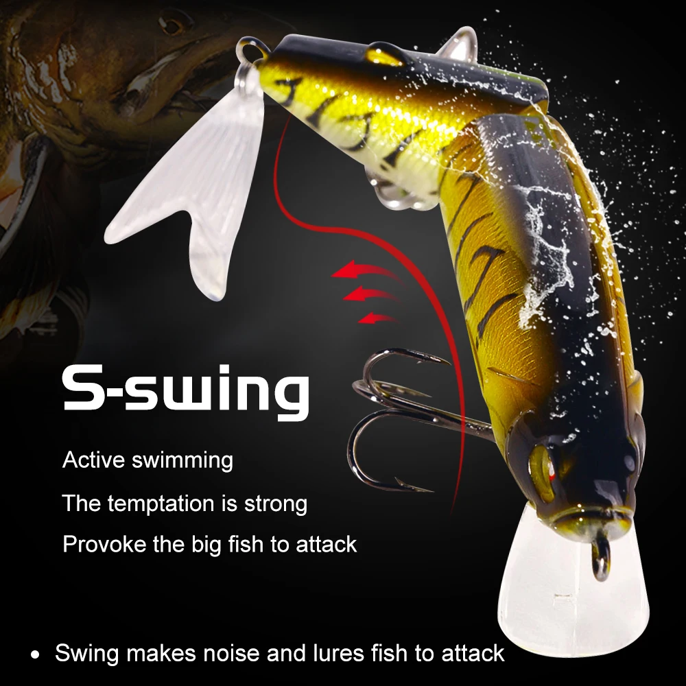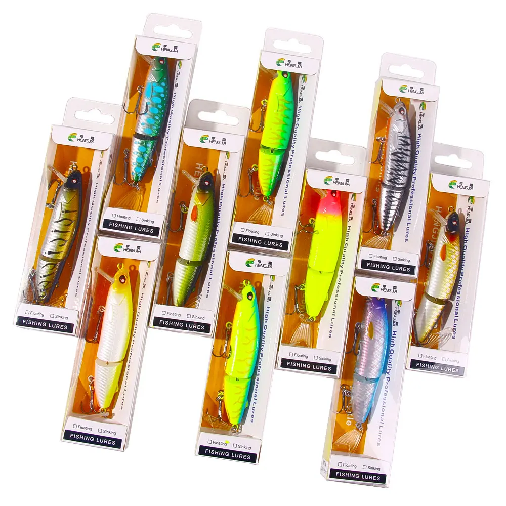 Tipo de señuelo: cebo articulado Peso del señuelo: 15,5 g Longitud del señuelo: 12 CM Ganchos: 2 * anzuelos triples fuertes Ojos: ojos de pez 3D Anillos: Anillos planos Colores: 10 colores diferentes Peixe objetivo: chub pálido, lubina, picos, carpa de cheque amarilla, culter de boca superior Lista de paquetes: 1 * pelusa ng Señuelo