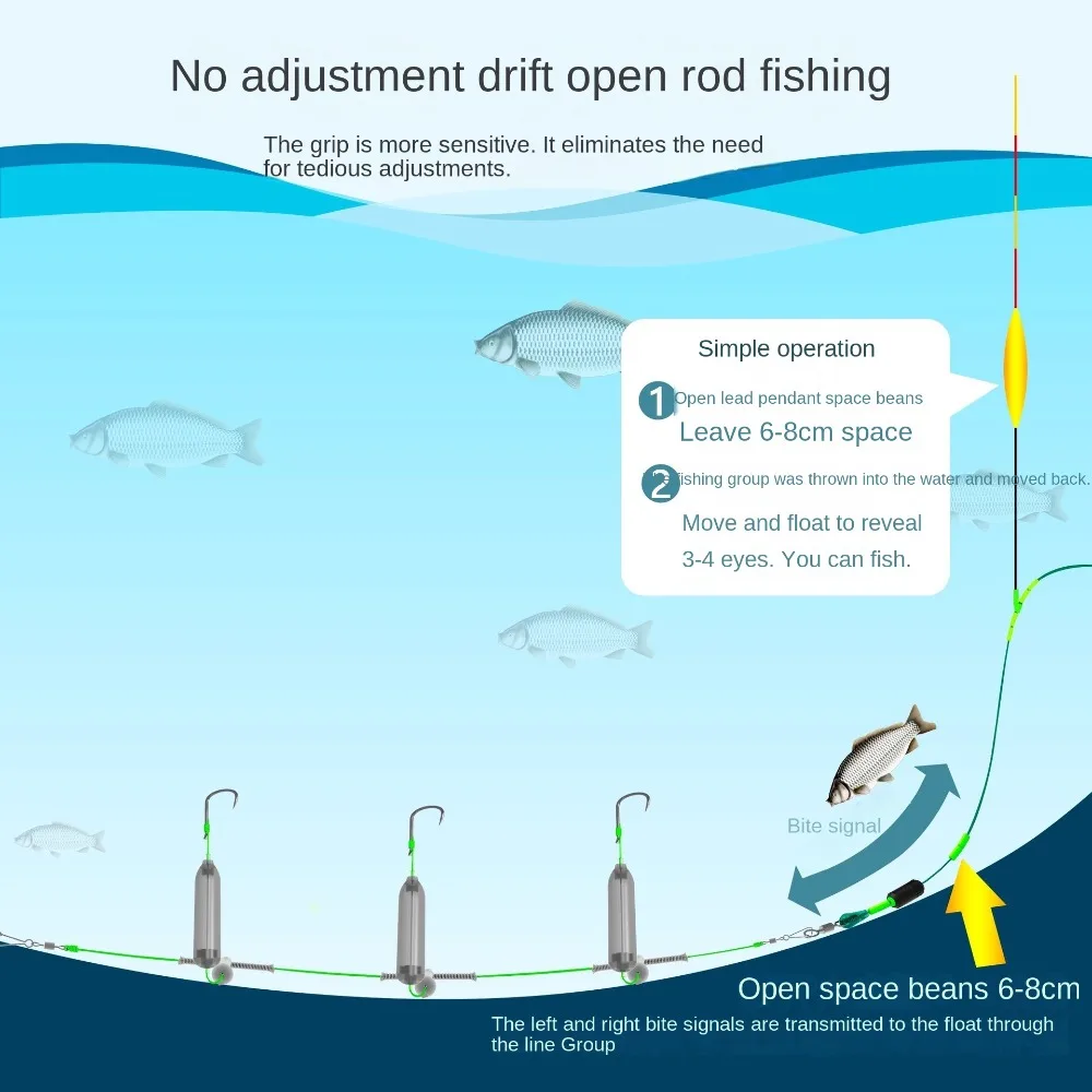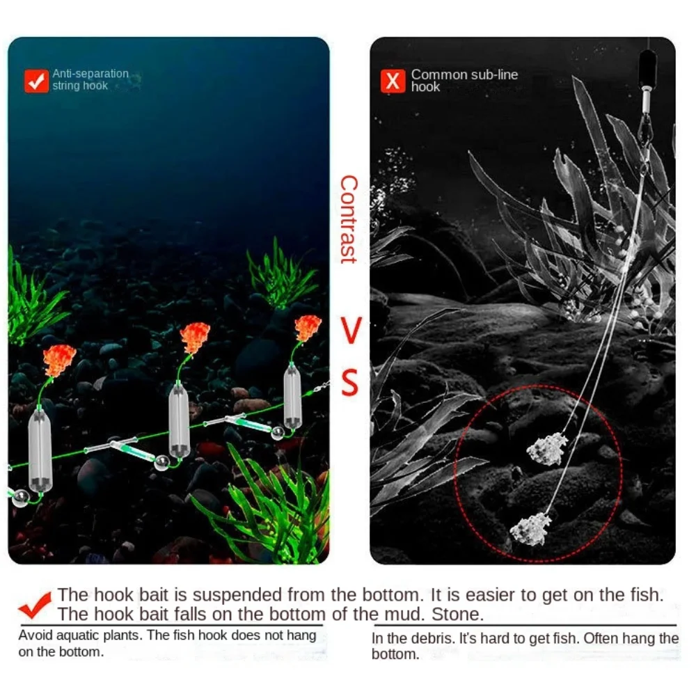 -Los anzuelos pueden flotar boca abajo bajo el agua, atrayendo más eficazmente a los peces para agarrar alimentos y aumentando las posibilidades de pescar más de tres veces.