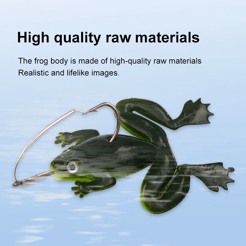 1.Diseño de rana ultrarrealista: la construcción de goma suave altamente detallada imita las ranas vivas, aumentando la probabilidad de atraer lubina negra y otras especies de peces depredadores.