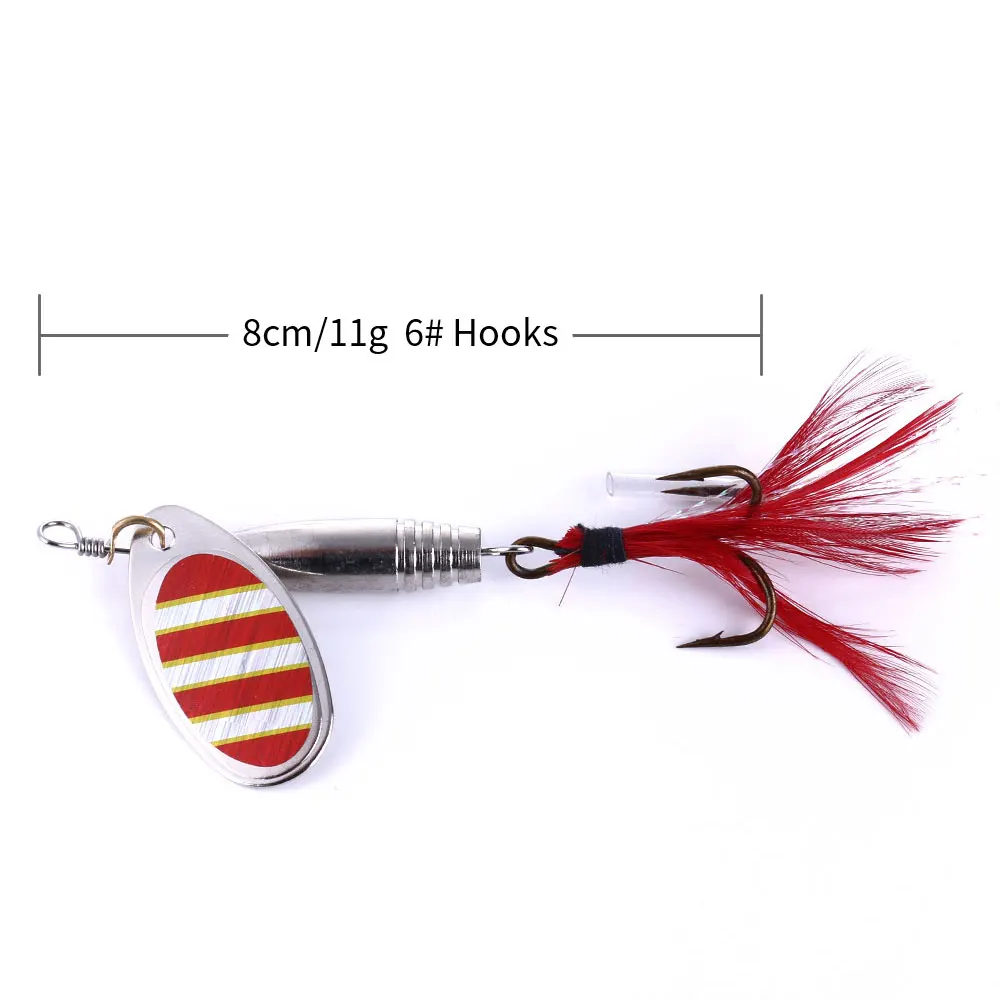 1 unidad/5 uds 8cm 11g cebos giratorios de pesca de lubina plantilla de metal señuelo cebo de pesca Spinner cuchara señuelos aparejos de pesca Zander pesca
