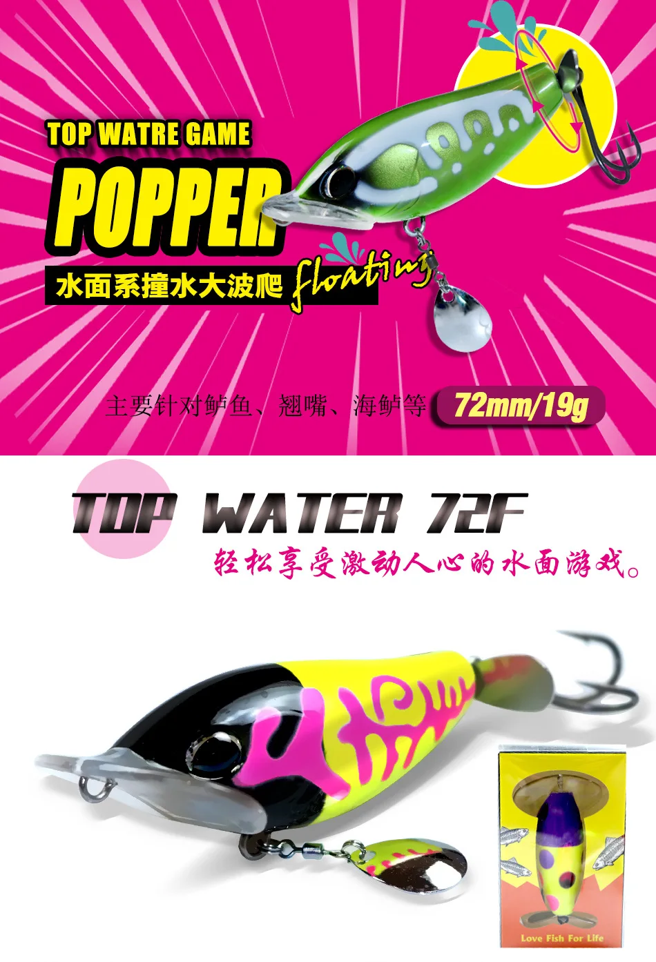 1 unidad 72mm 19g sistema de superficie colisión onda de agua gateando boca cuadrada gran salpicadura Tractor señuelo pesca lubina