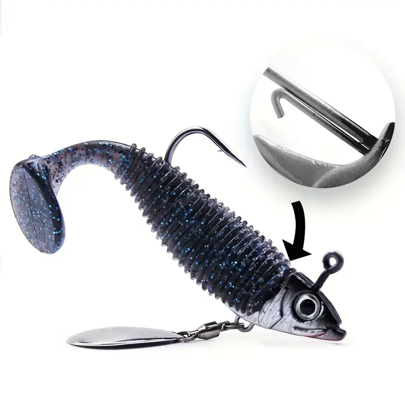 1 unidad de anzuelo de pesca de plástico suave con cabezal de anzuelo de natación de 15G, aparejos terminales de resistencia a la corrosión de alta resistencia para agua dulce y salada
