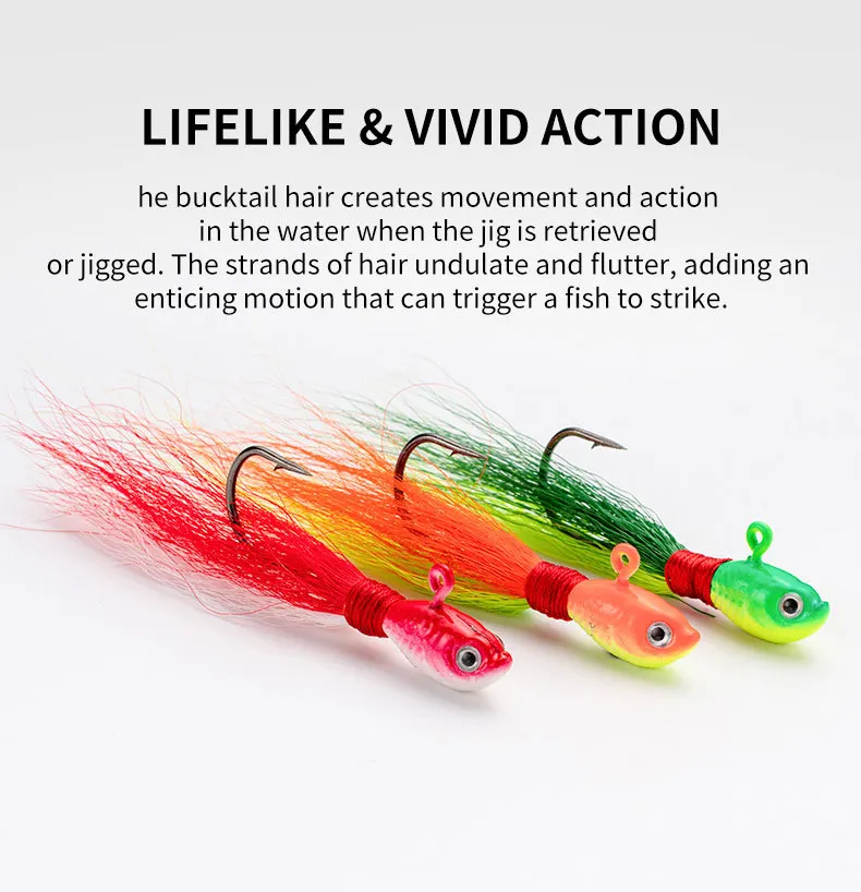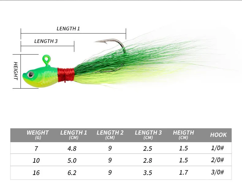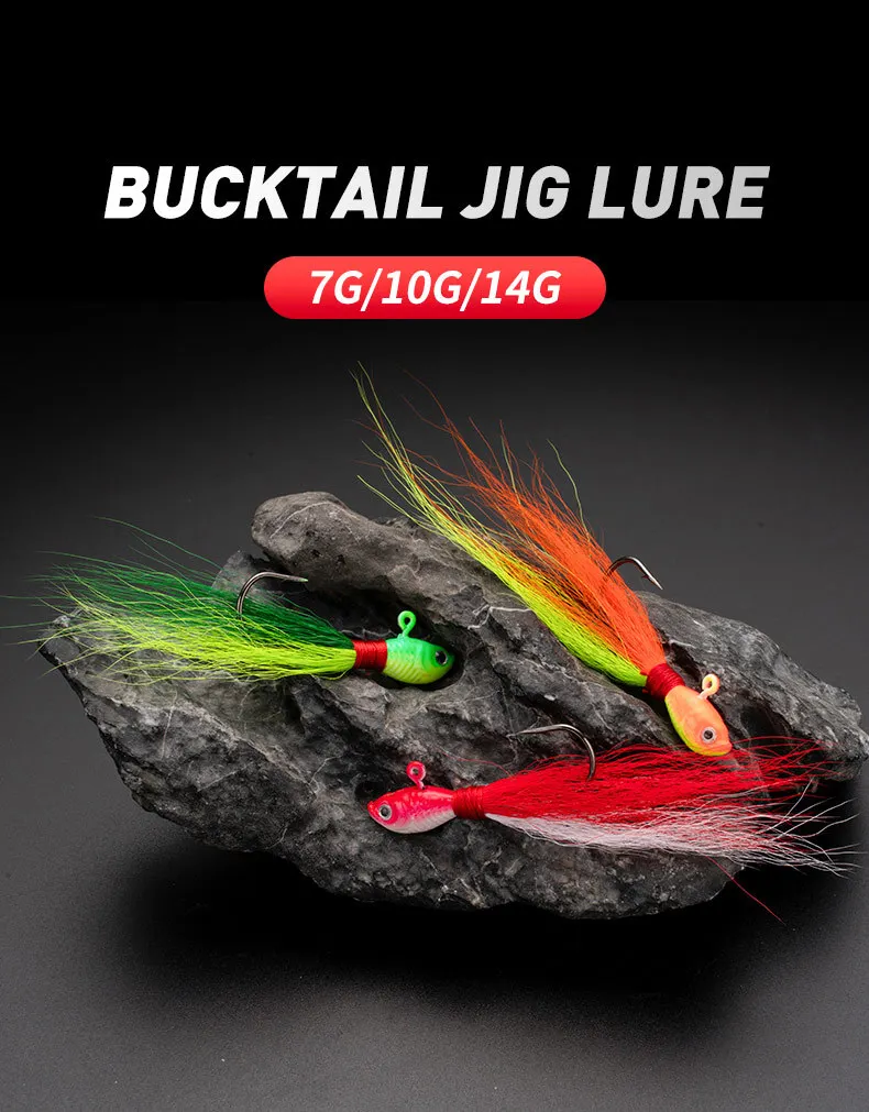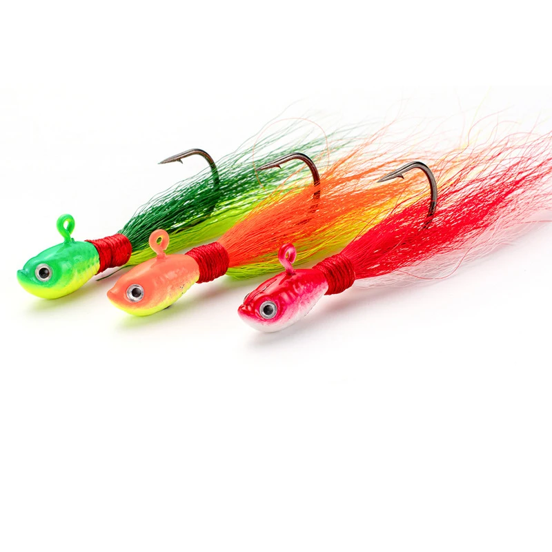 1 unidad de anzuelos Bucktail, anzuelo para cabeza, cebo suave que se hunde, 7g, 10g, 16g, anzuelo de plumas de pelo de ciervo, señuelo de Jigging para Bar, Lucio, Pesca