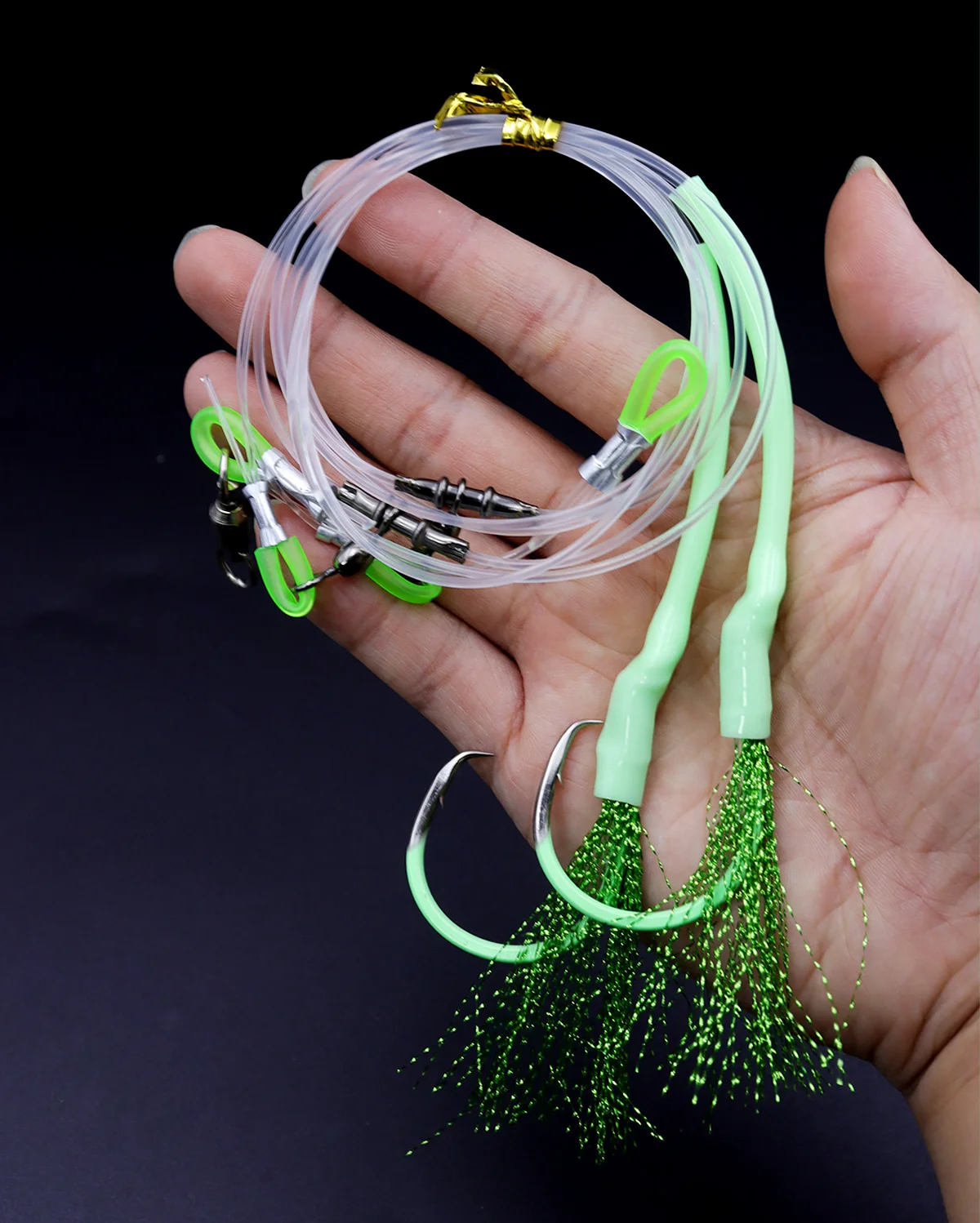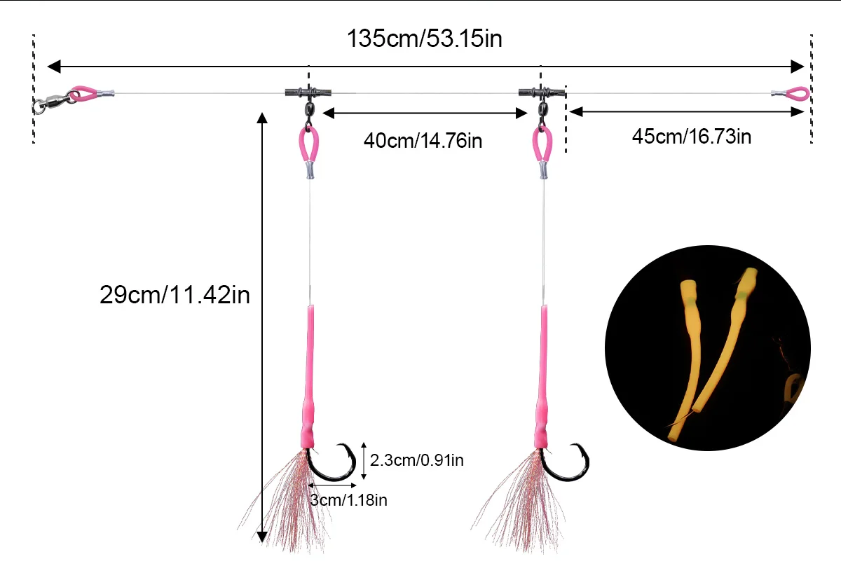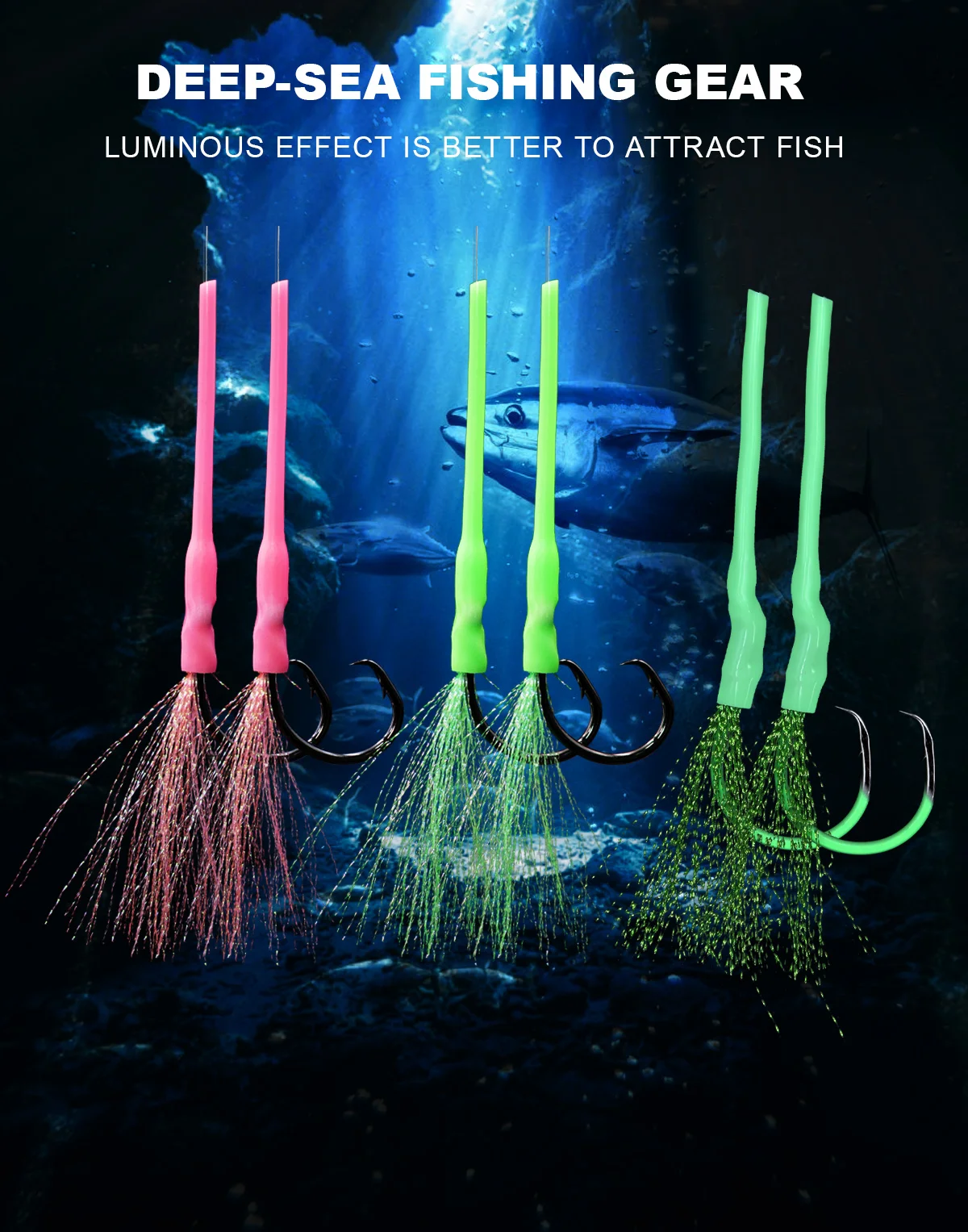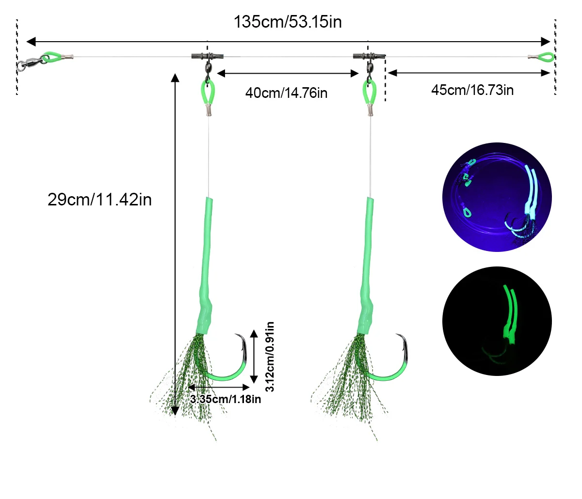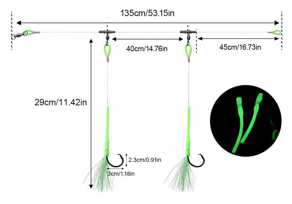 1 unidad de aparejos de pesca de aguas profundas, aparejo de bacalao, sedal fuerte con tubo luminoso, gancho circular negro, aparejos de pesca de agua salada ideales