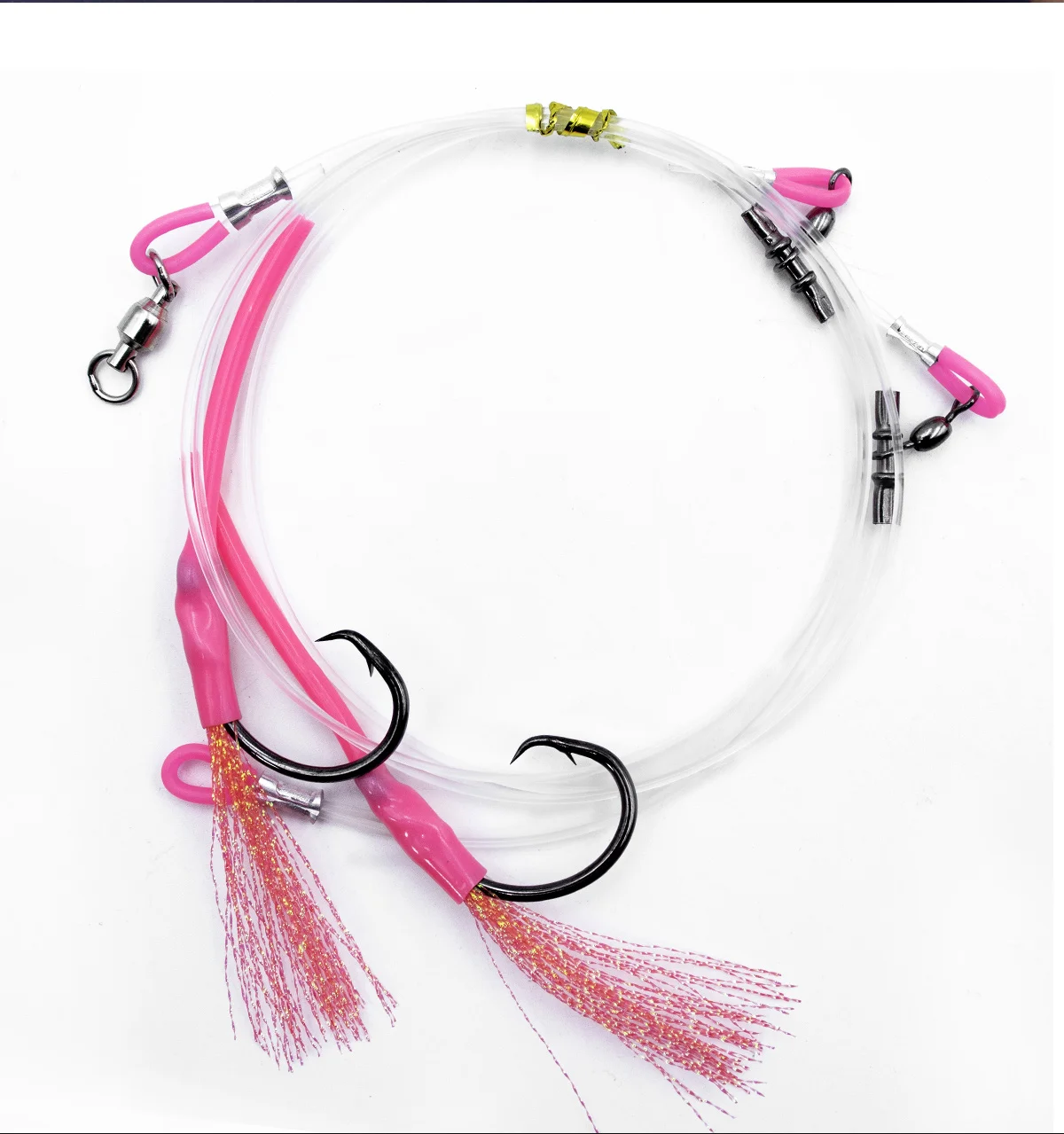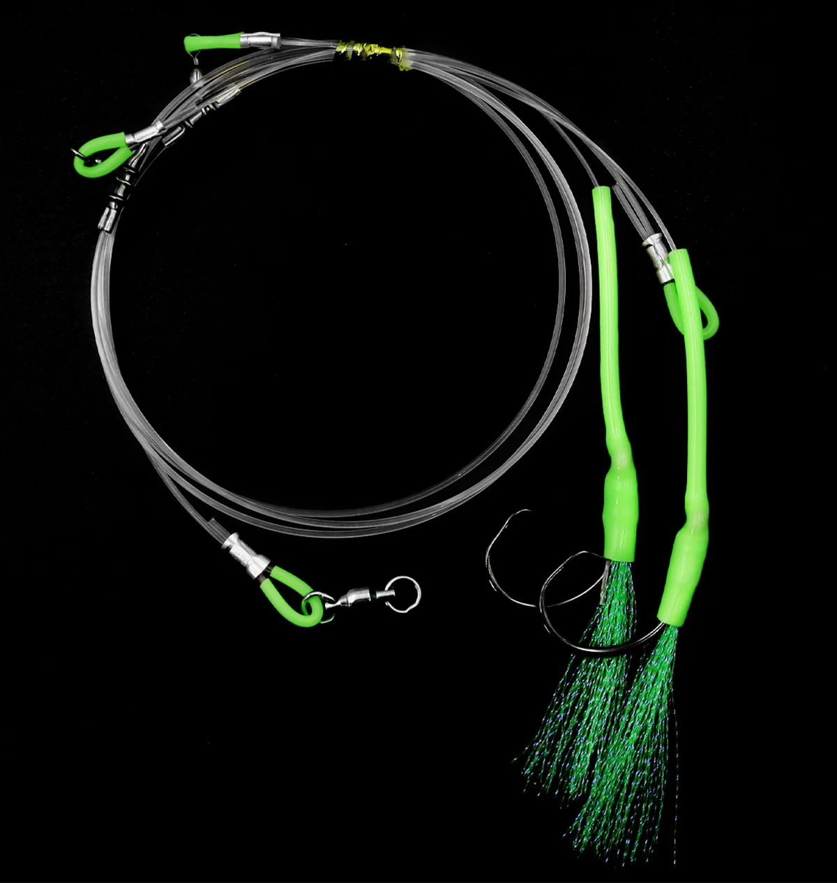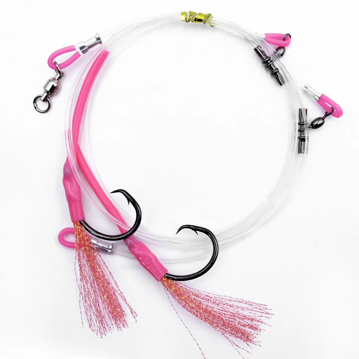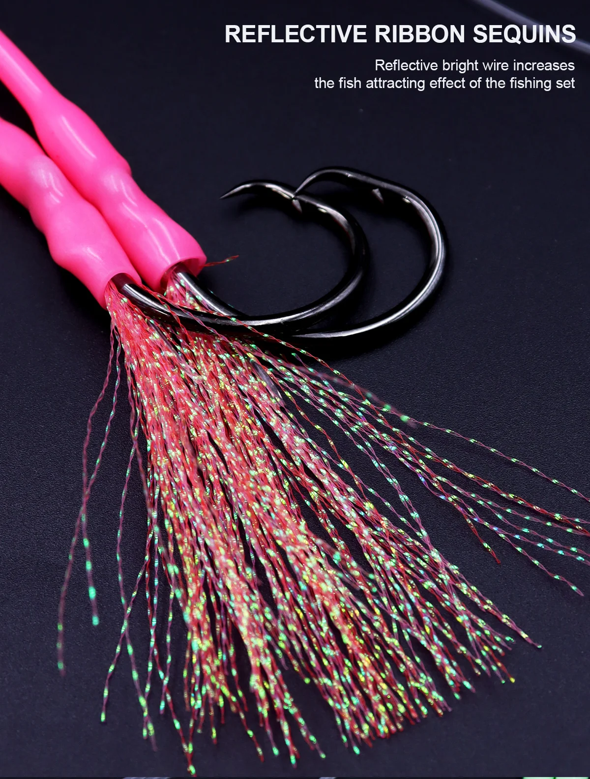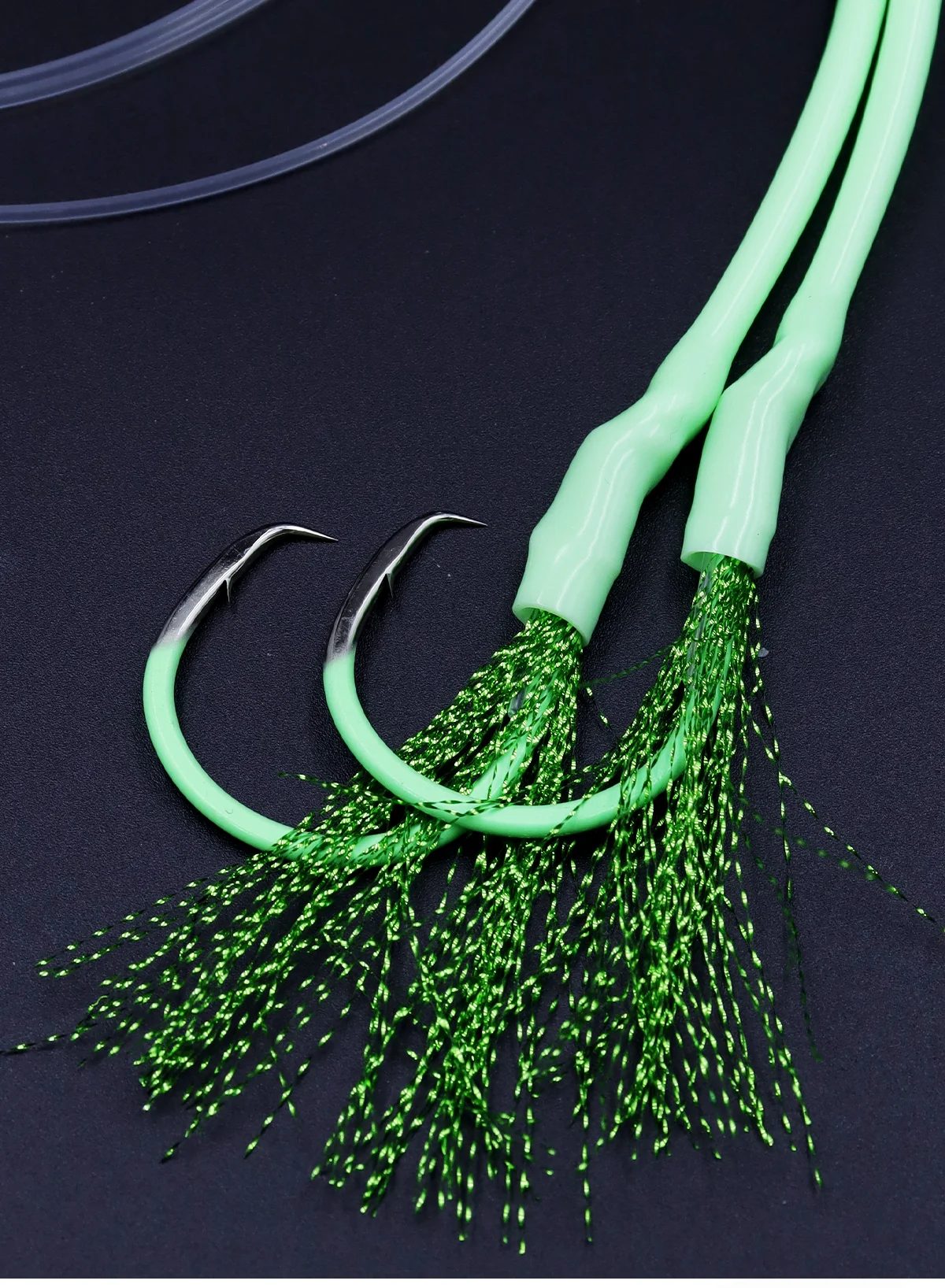 1 unidad de aparejos de pesca de aguas profundas, aparejo de bacalao, sedal fuerte con tubo luminoso, gancho circular negro, aparejos de pesca de agua salada ideales