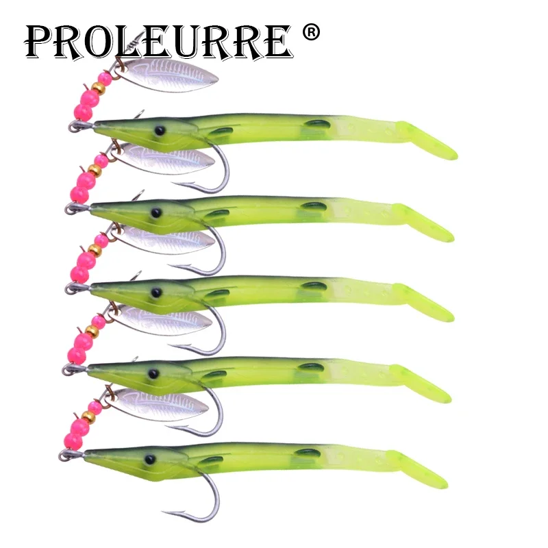 1 unidad de cebo Artificial suave de silicona de camarón luminoso de 12,5 cm y 6g con ganchos giratorios Anzois Para Pesca Sabiki aparejos de Pesca