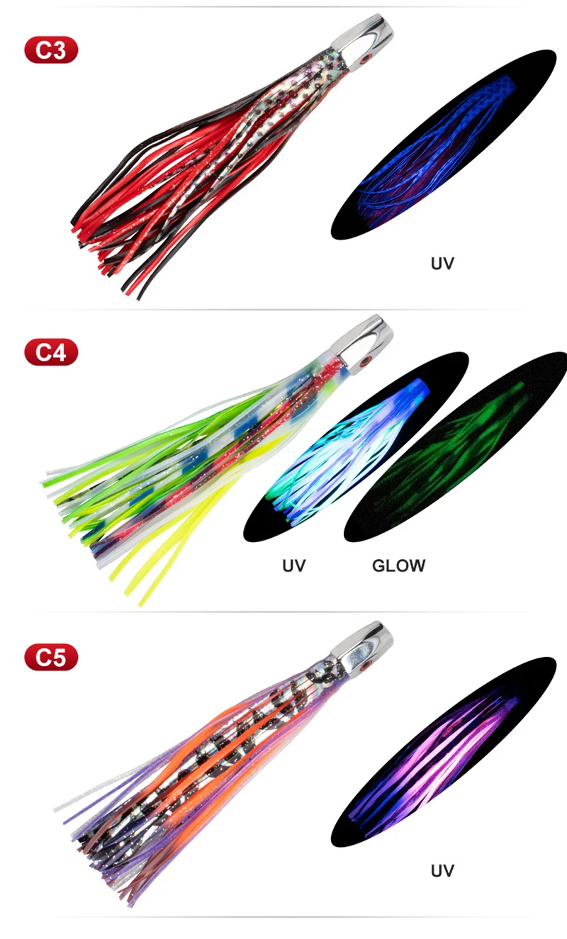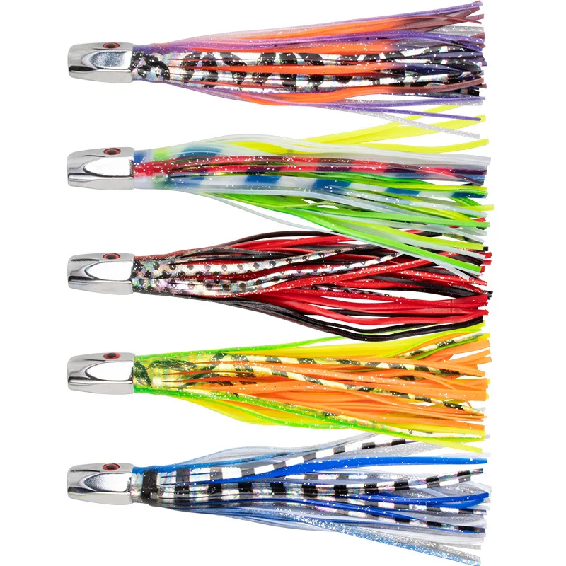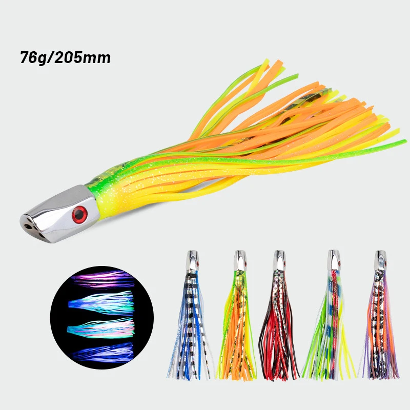 1 unidad de cebo con falda de calamar y pulpo con cabeza de cobre, 20,5 cm, señuelo de pesca de agua de mar, gran juego de aguas profundas, pesca de arrastre, Marlin, atún, señuelo de arrastre
