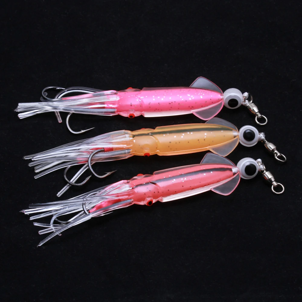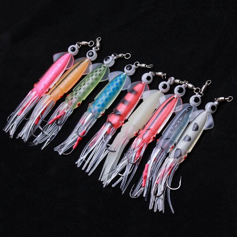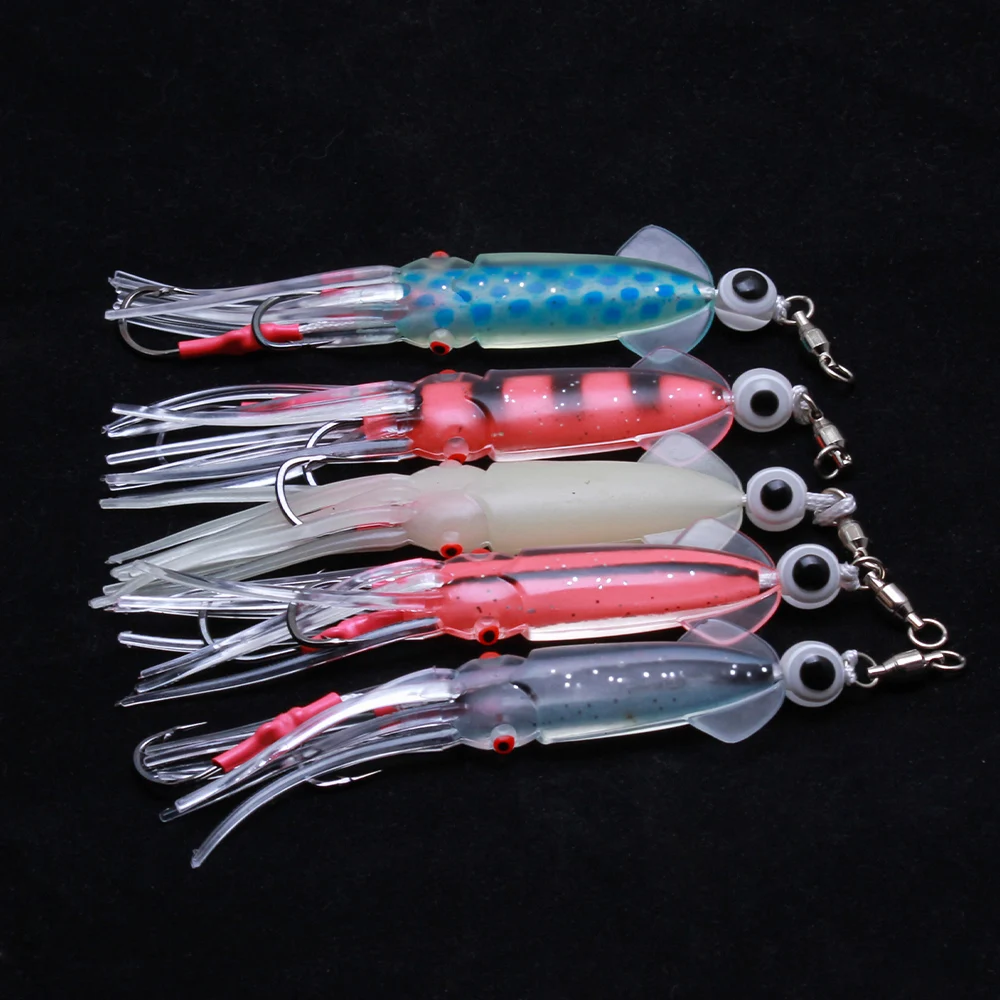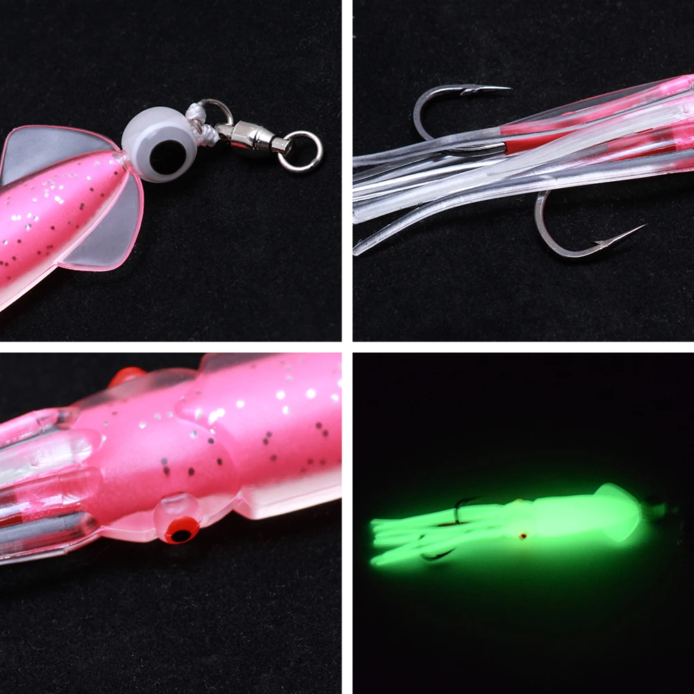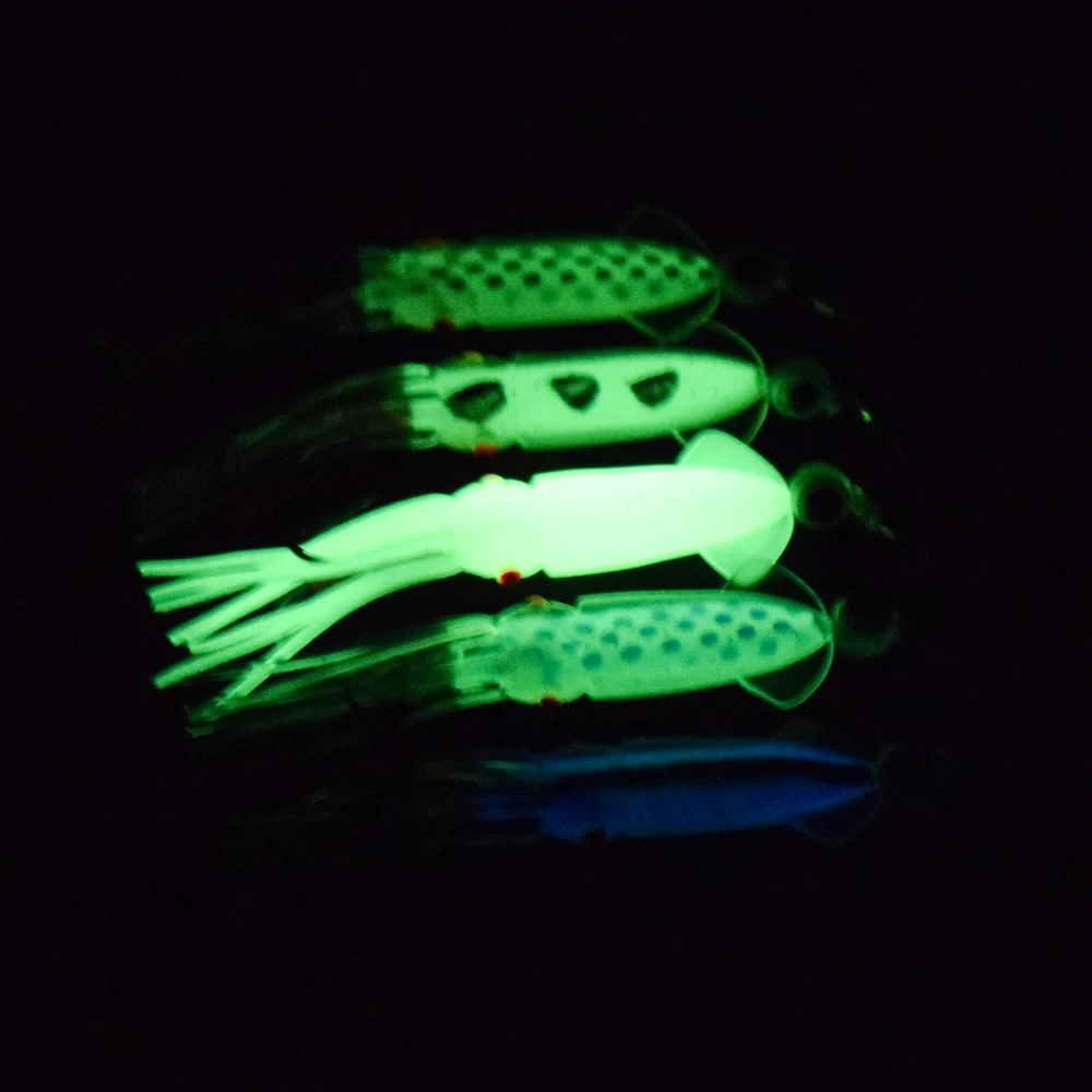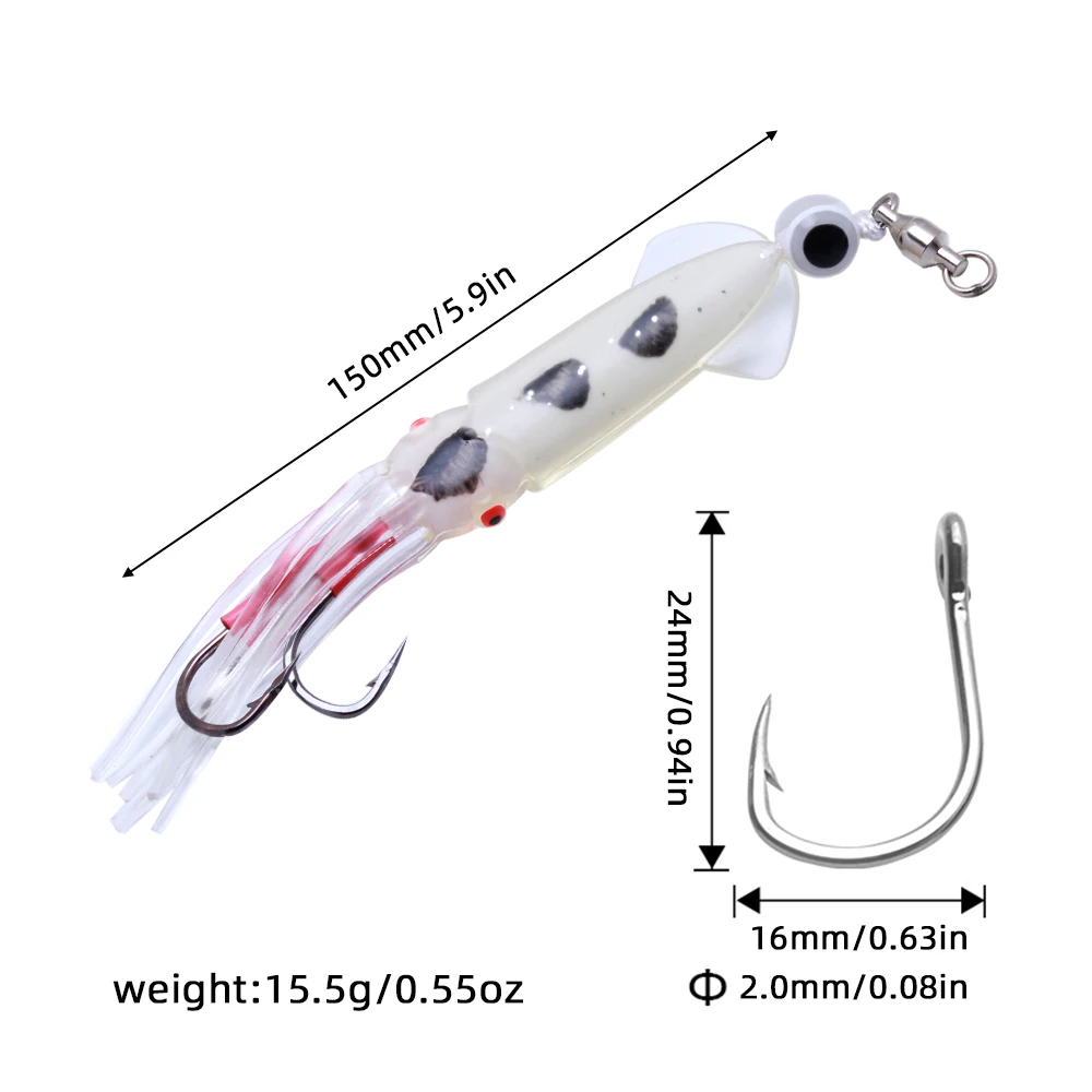 1 unidad de cebo de pesca luminoso de aguas profundas con barco de pesca, cebo de calamar con cabeza de calamar, cebo falso, cebo blando