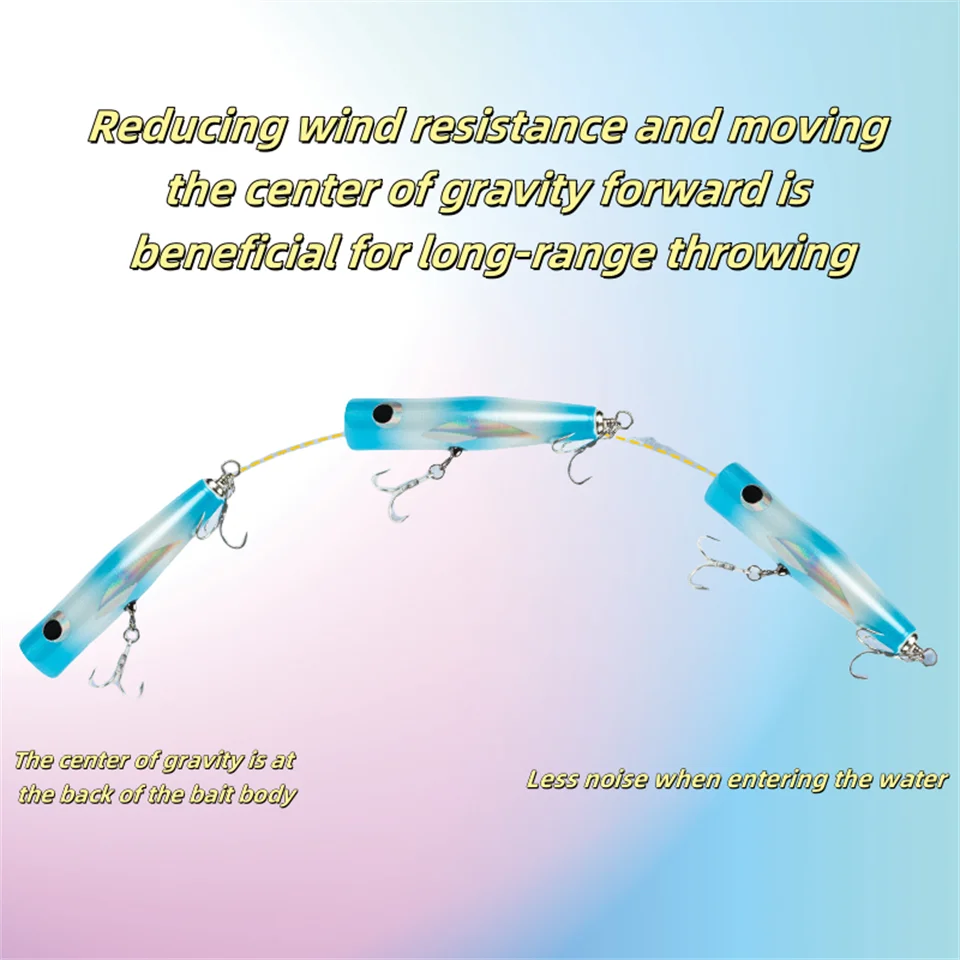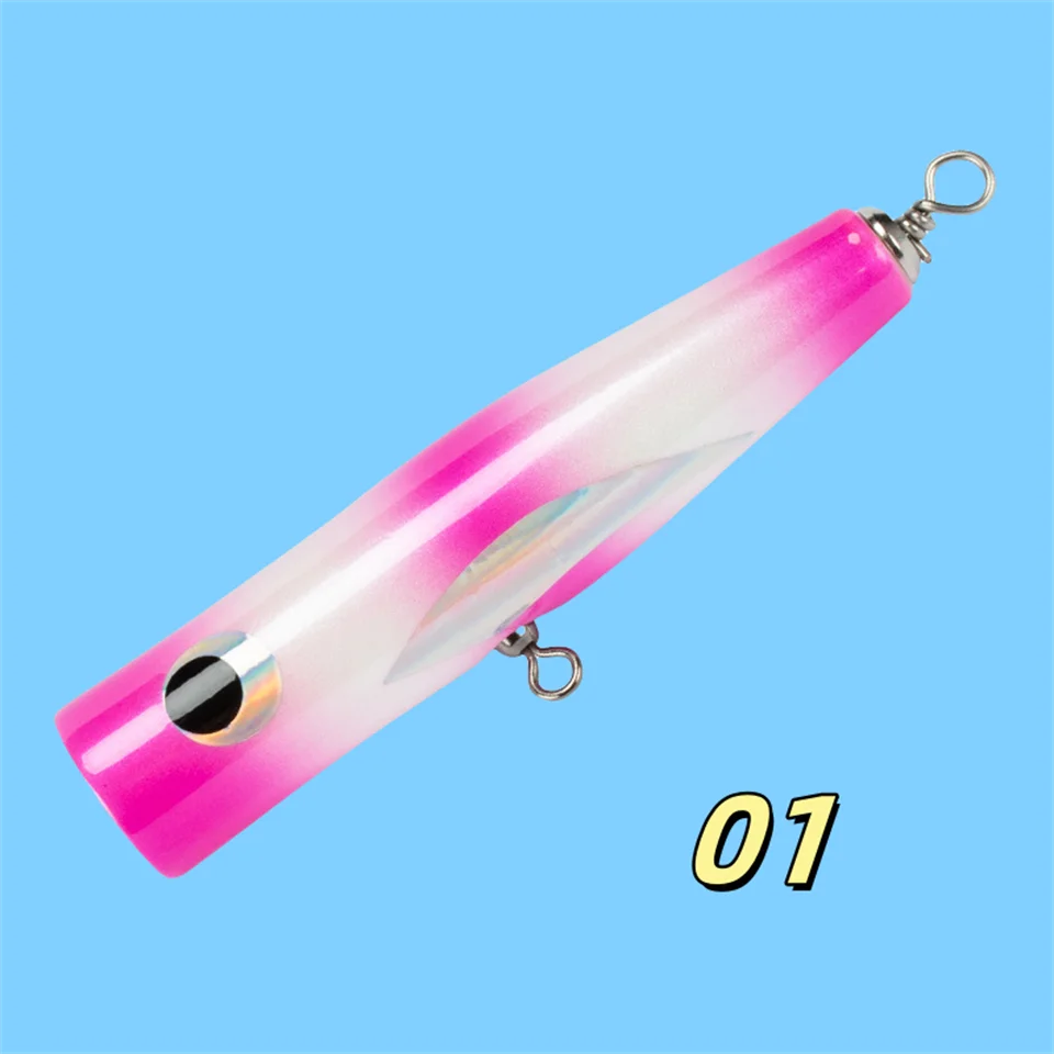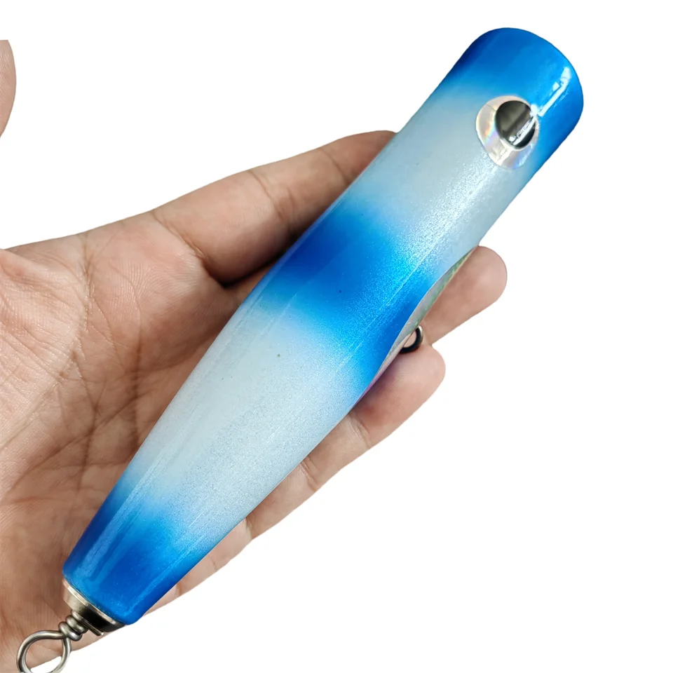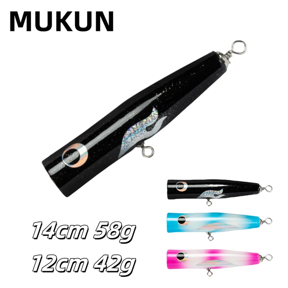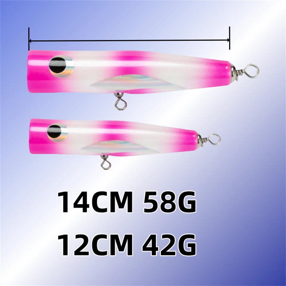 1 unidad de cebo de pesca Popper de madera, señuelo de pesca de 14cm/58g 12cm/42g, Mini Popper de madera, cebo Artificial Popper de agua superior para peces de playa