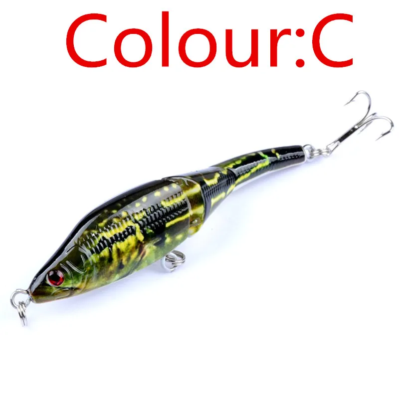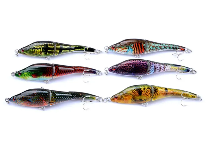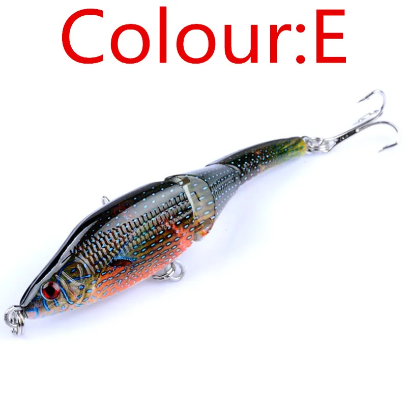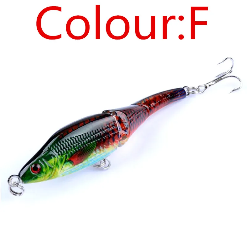 Marca: WDAIRENTipo de Cebo: cebo multiarticulaciónPeso: 9gLongitud: 95mmProfundidad de buceo: hundimiento lentoColor: 6 colores diferentesGancho: 2x gancho triple afiladoMaterial: plástico ABSLista de embalaje:1 x señuelo de pesca