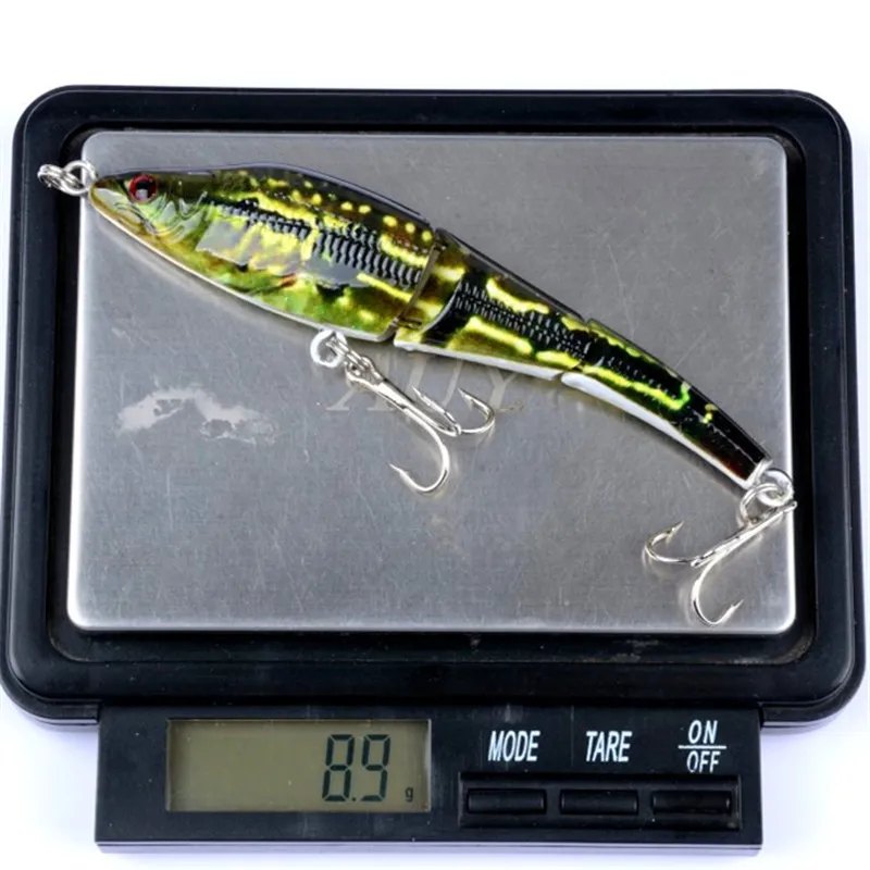 1 piezas de cebo pintado multiarticulación 3D 9,5 cm 9g Minnow que se hunde lentamente señuelo duro Artificial Swimbait aparejo de pesca lubina Wobblers señuelos FA-419