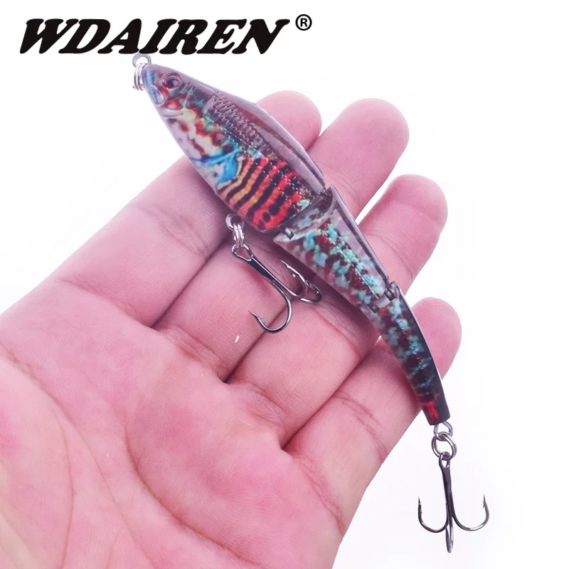 Marca: WDAIRENTipo de Cebo: cebo multiarticulaciónPeso: 9gLongitud: 95mmProfundidad de buceo: hundimiento lentoColor: 6 colores diferentesGancho: 2x gancho triple afiladoMaterial: plástico ABSLista de embalaje:1 x señuelo de pesca