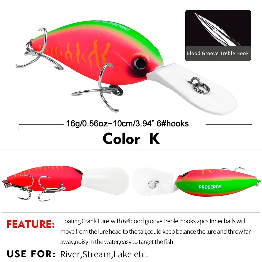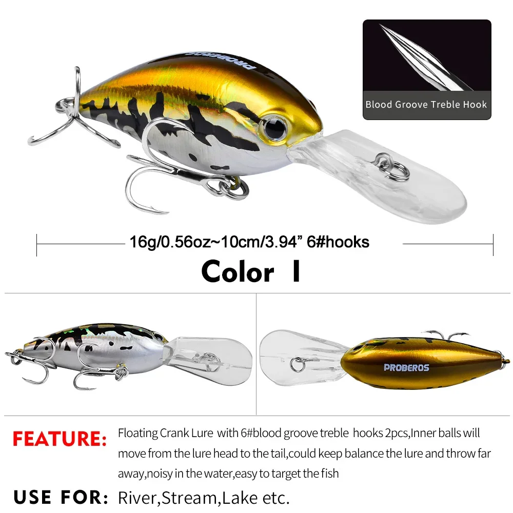 1 unidad de Crankbait de sonajero, 10,5 cm-15g, señuelo de pesca flotante, cebo duro ruidoso, Wobbler Artificial, Swimbait de lubina de fundición larga