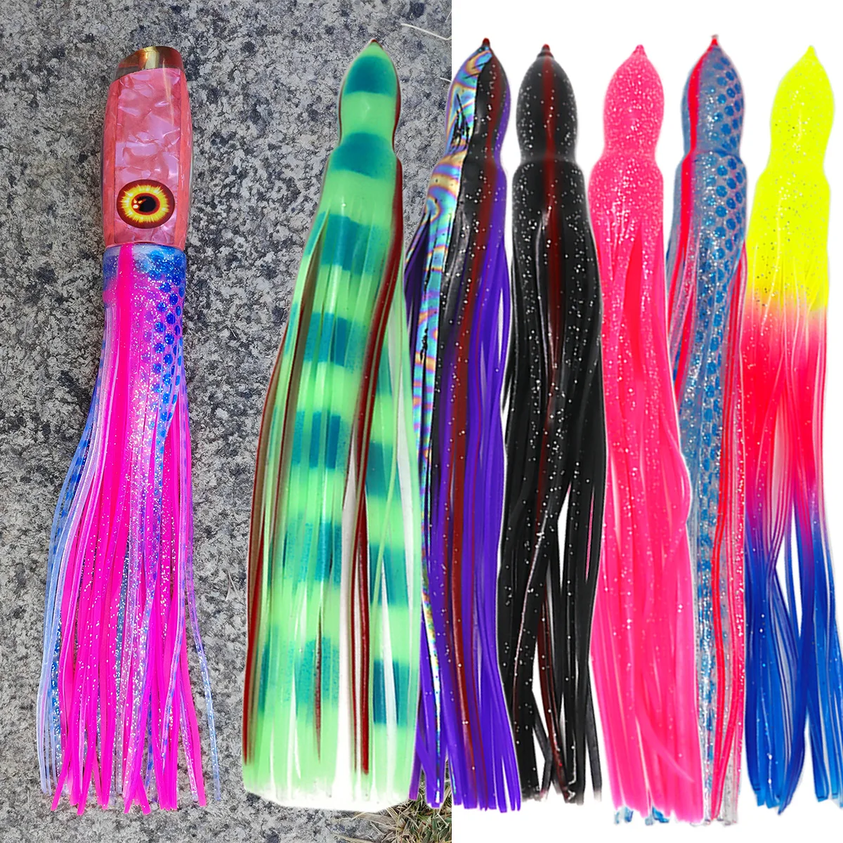 1 unidad de faldas de calamar de repuesto de 22cm, señuelo Marlin atún Wahoo, gran juego, señuelo de pesca en alta mar, cebo de falda de pulpo de curricán suave