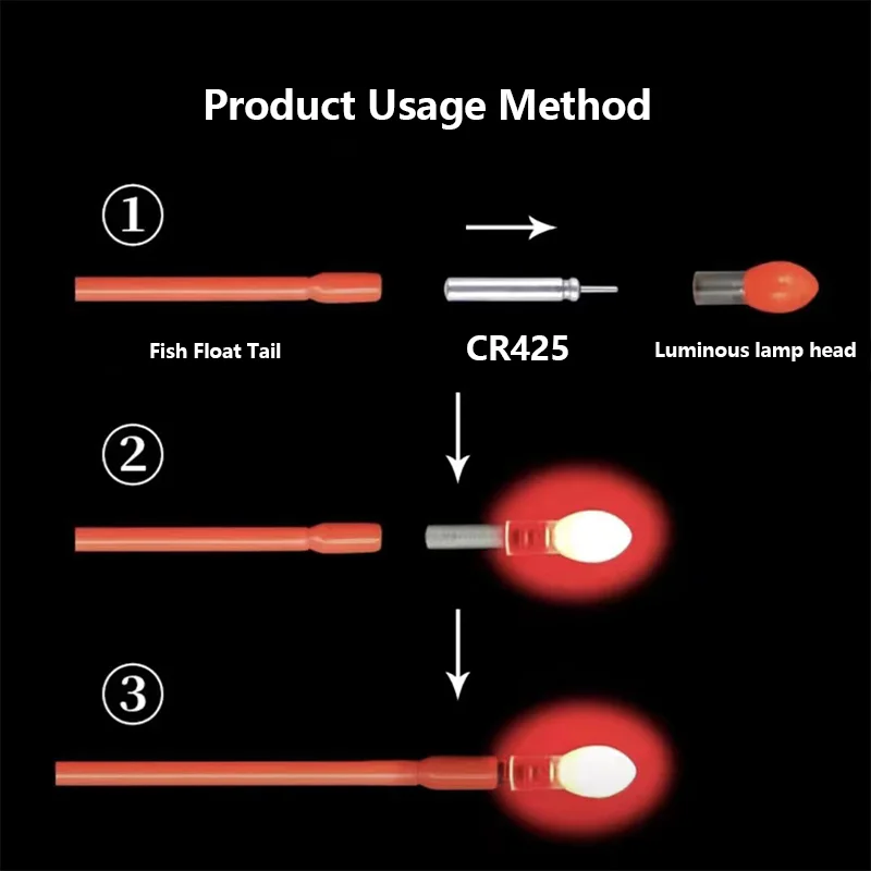 1 unidad de luz flotante luminosa LED, cabezal de luz flotante electrónico para peces para pesca nocturna en el mar con batería CR425
