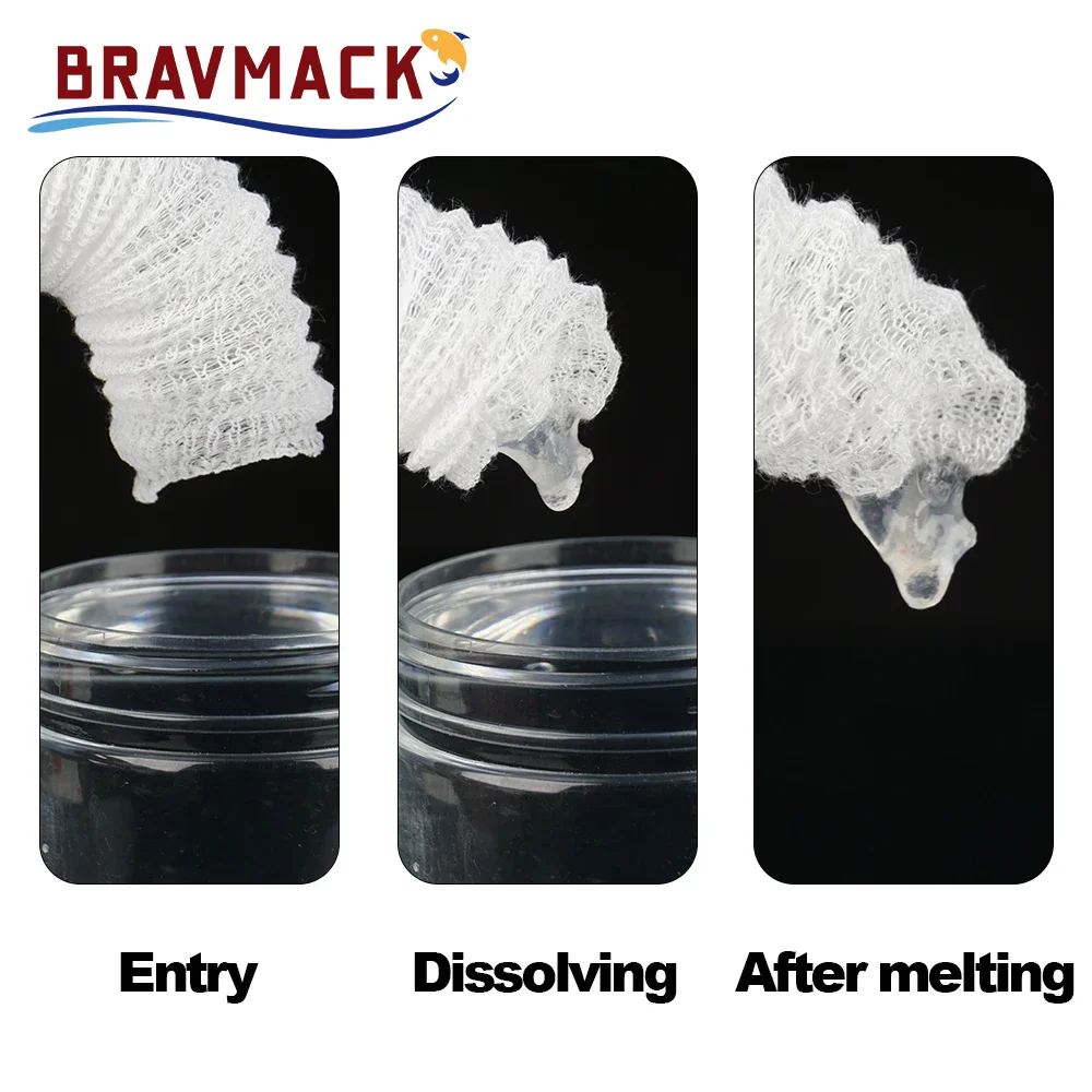 El producto no coincide con la descripción. La malla de PVA no se disuelve ni siquiera en agua tibia. La malla forma una sustancia gelatinosa en el agua que no se disuelve. No recomiendo este producto. AliExpress me reembolsó el dinero.