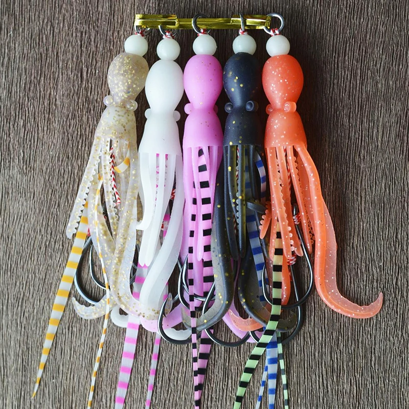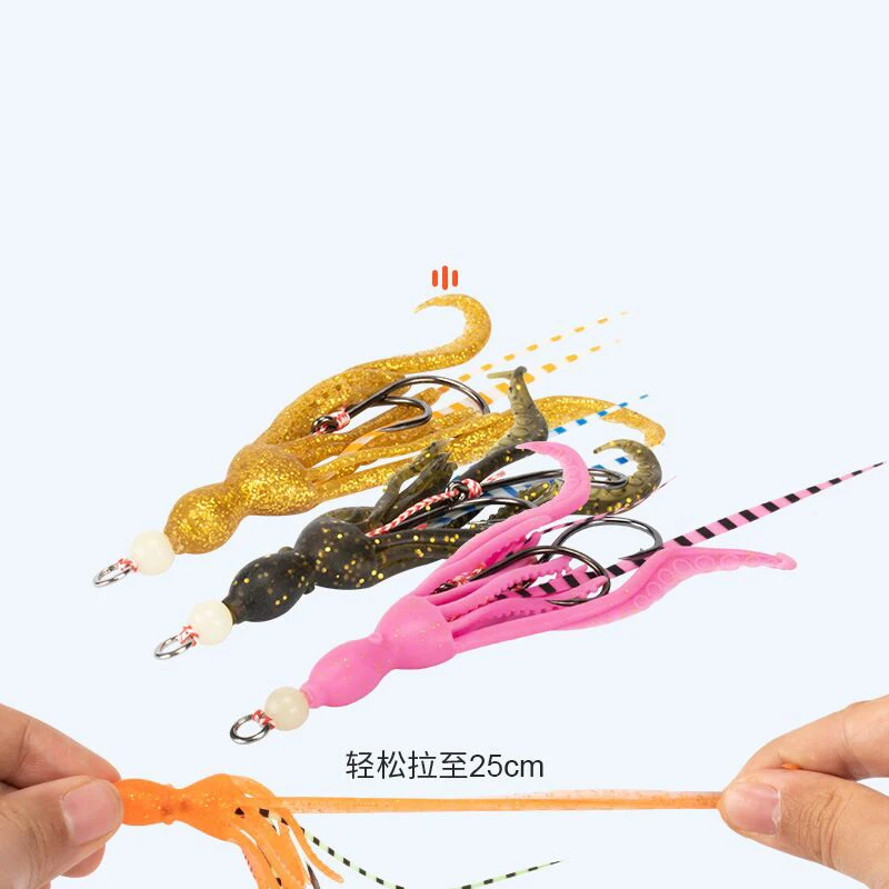 1 unidad13 # Señuelo de falda de calamar de silicona suave, anzuelo de ayuda de Jigging lento, cebo luminoso de curricán, accesorios de pesca de mar de agua salada, 7g