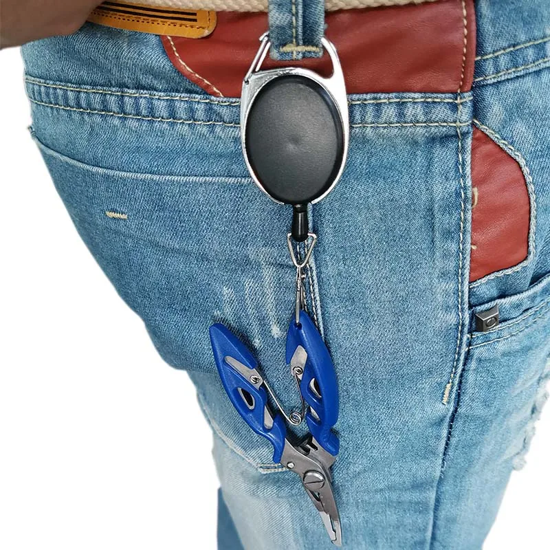 Descripción :1 unids/lote aparejos de pesca con mosca herramienta de nudo multiusos corbata combinación rápida líneas de peces cortador Zinger Retractor tijeras gancho afilador