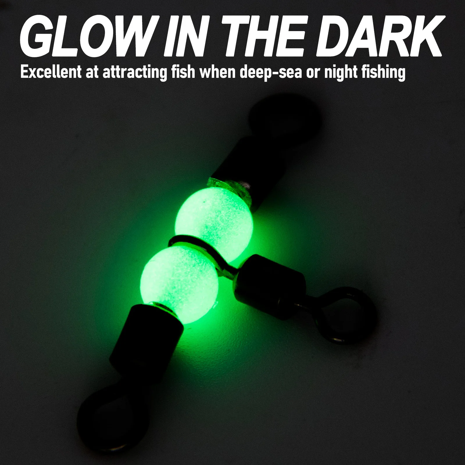 【Luminous Design】The plastic beads on the 3-Way Barrel Swivels are glow in the dark, which is excellent at attracting fish when deep-sea or night fishing.