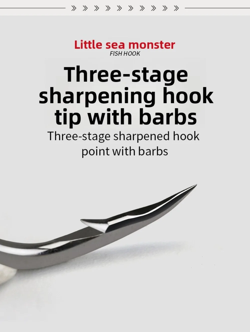 Penetración superior: el diseño de la punta de la aguja facilita la fácil penetración, mejorando el anzuelo para diversas condiciones de pesca.