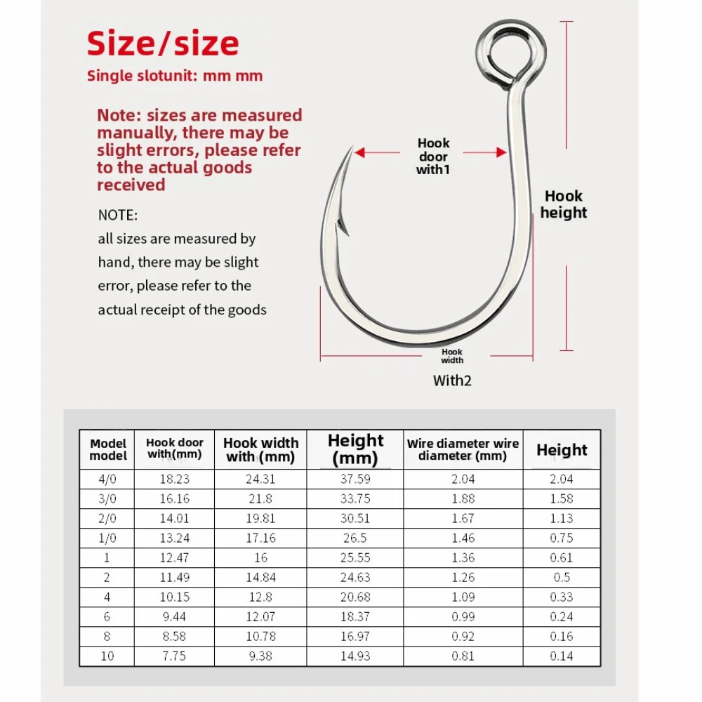 Versatile Size Range:Available in sizes 2/0 to 9/0, these hooks cater to a variety of fishing scenarios and lure types.