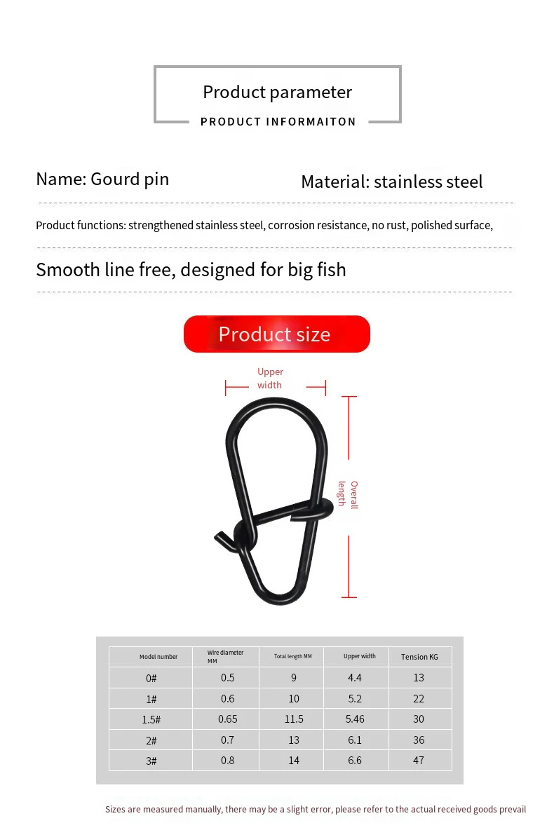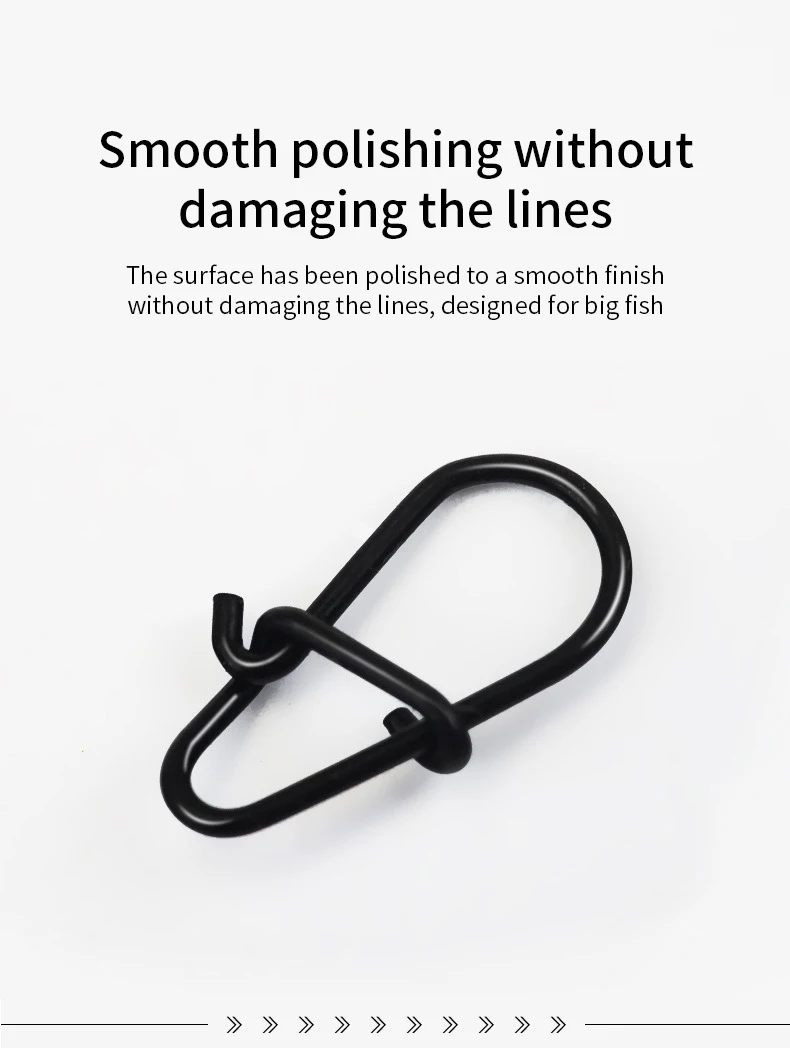 La superficie del broche ha sido finamente pulida muchas veces, su cuerpo es liso, no corta ni daña el hilo de pescar, es duradero, resistente al desgaste y a la corrosión.