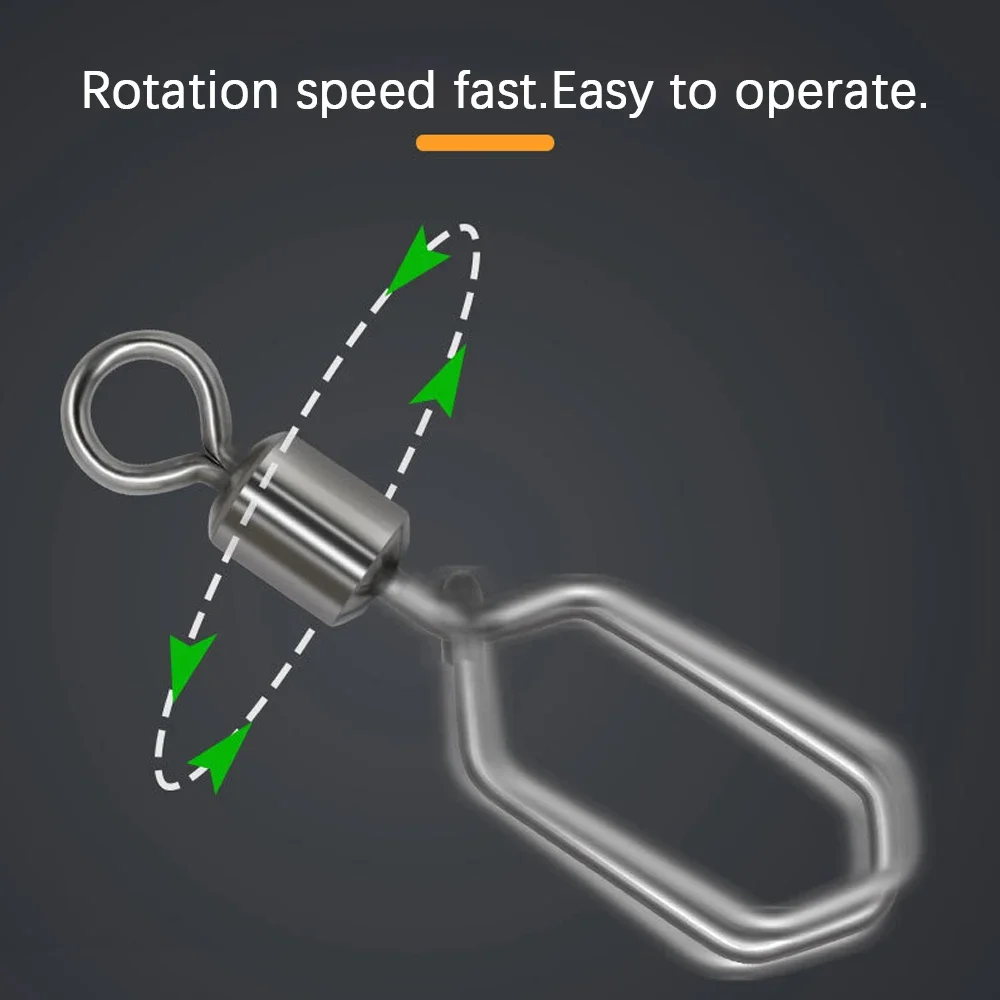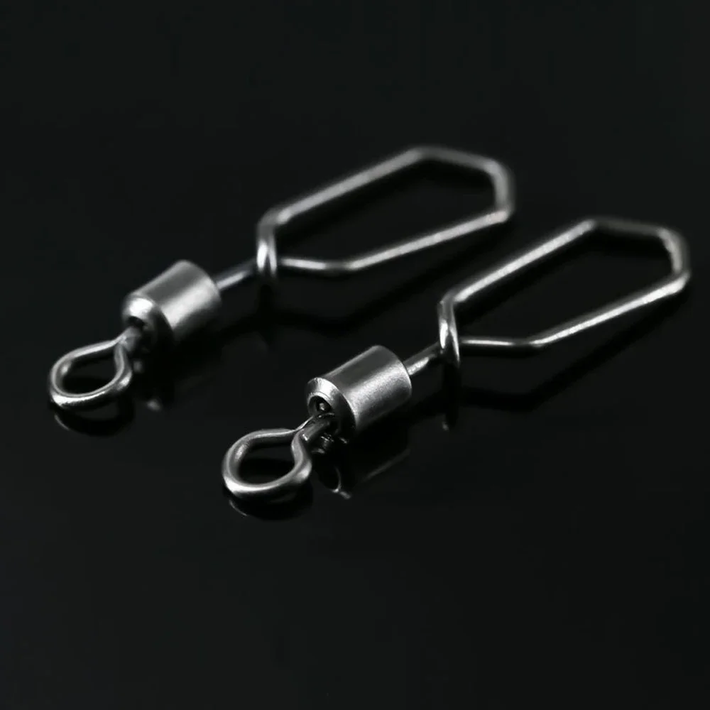 10 ~ 60 uds. Giratorios de pesca con gancho a presión, barril rodante de pesca de acero inoxidable, conector de señuelo de pesca giratorio, broche de enclavamiento