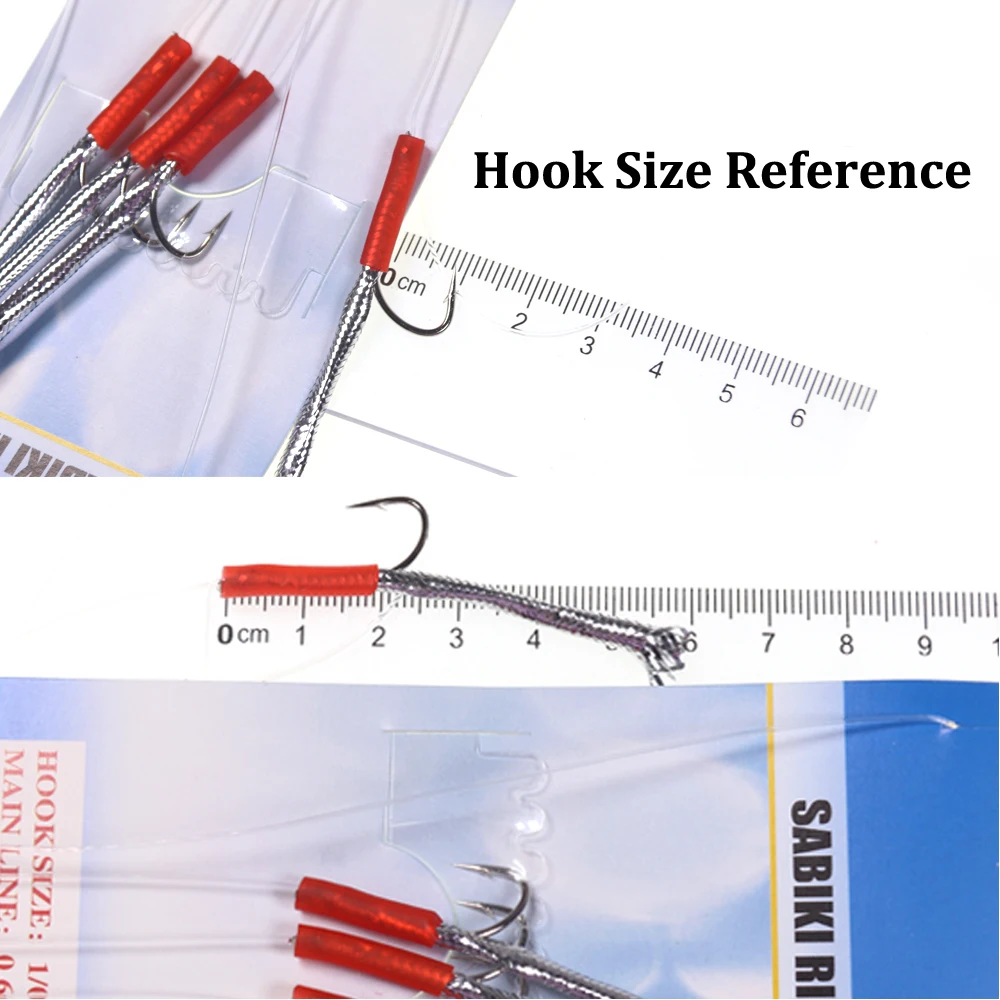 Type: Sea Fishing Sabiki Rigs Hook:1/0# high carbon steel,the handle of hook is circular. the tip of the hook is with barb 3 Types Rig for option: Tinsel Silver / Feather / Flash Film Rigs Main line diameter/length:Approx.0.6mm/150cm Branch line diameter/length:Approx.0.5mm/10cm Weight:Approx.7.8g each Package:10bags/lot Both retail and wholesale are available, welcome to consult