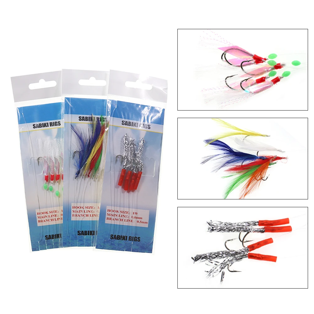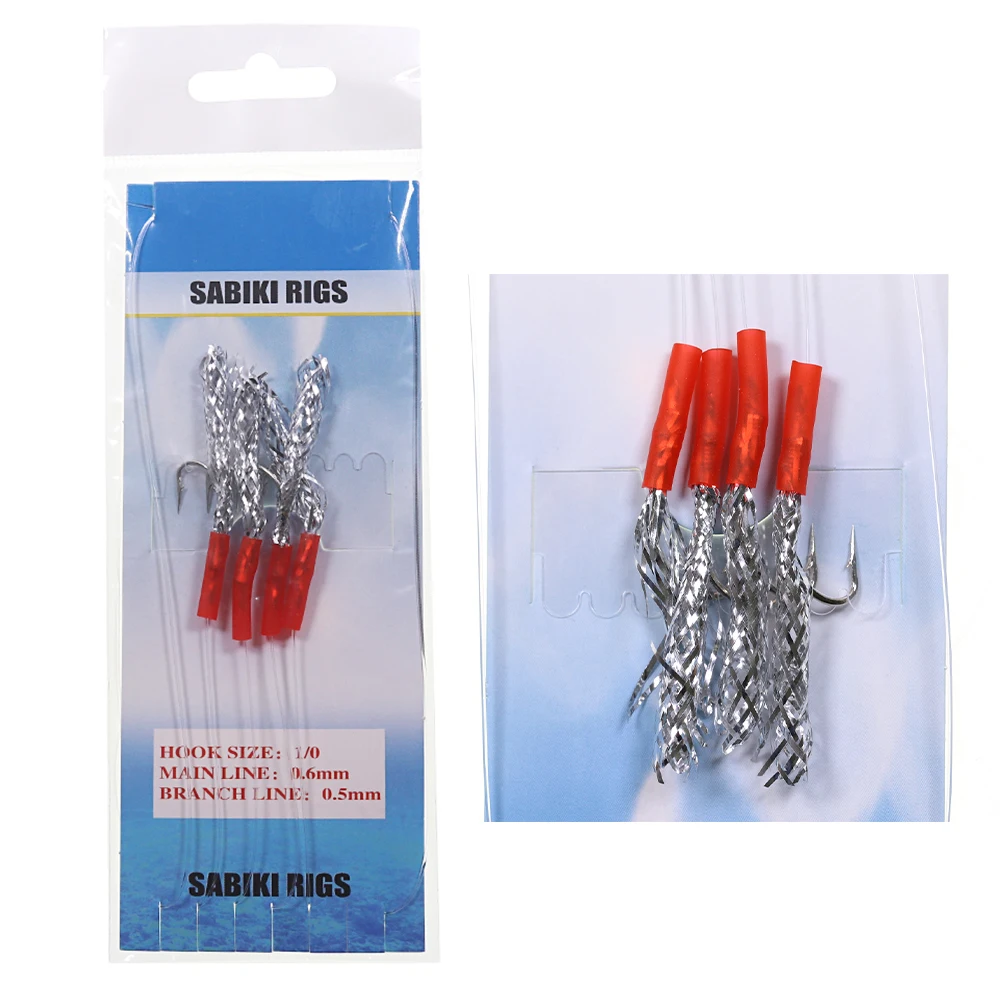 [10 bolsas] de agua salada Sabiki pluma/tubo de oropel/aparejo de cebo Flash tamaño 1/0 aparejos de cebo al por mayor/al por menor