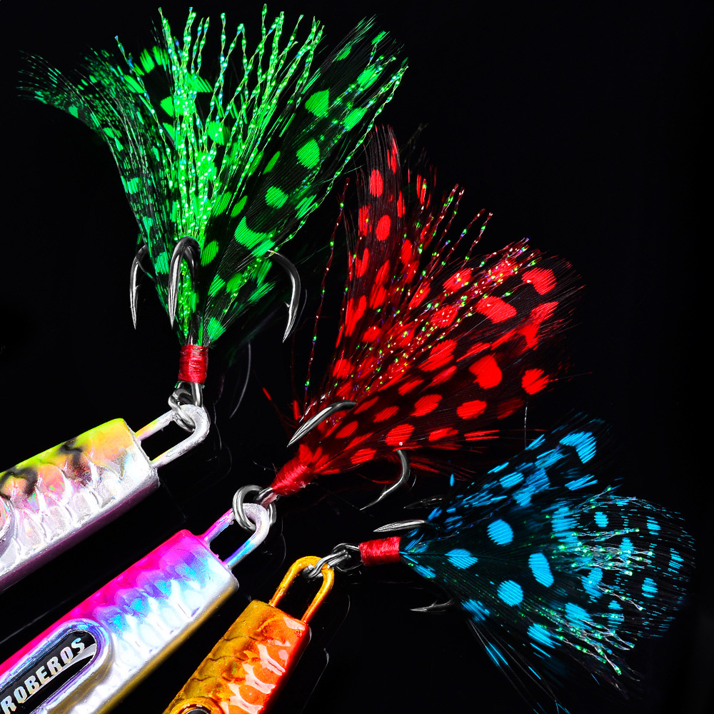 10 ganchos triples de asistencia con plumas # 2-10 Pesca con mosca anzuelo de púas individuales con plumas Señuelos de Pesca de lubina accesorios de Pesca