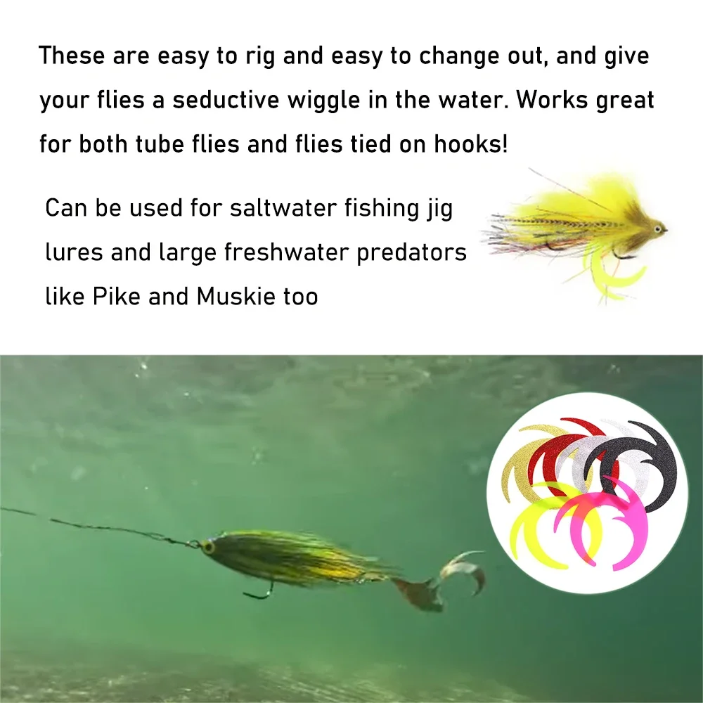 Wiggle Tails es la rabia más nueva en la pesca y pesca de moscas de depredadores. Son fáciles de montar y fáciles de cambiar, y le dan a sus moscas un movimiento seductor en el agua.¡Funciona muy bien tanto para moscas en tubo como para moscas atadas a ganchos!Nueva variación en la clásica cola de movimiento.Ideal para atar moscas de pesca y señuelos jig.¡La gran acción de estas colas despertará incluso al depredador más dormido!Disponible en 2 tamaños para cubrir todo, desde panfish pequeño hasta monstruo lubina.También se puede utilizar para señuelos de pesca en agua salada y grandes depredadores de agua dulce como Lucio y Muskie.Se utiliza como teaser o remolque en lugar de colas de cúpula de plástico blando.