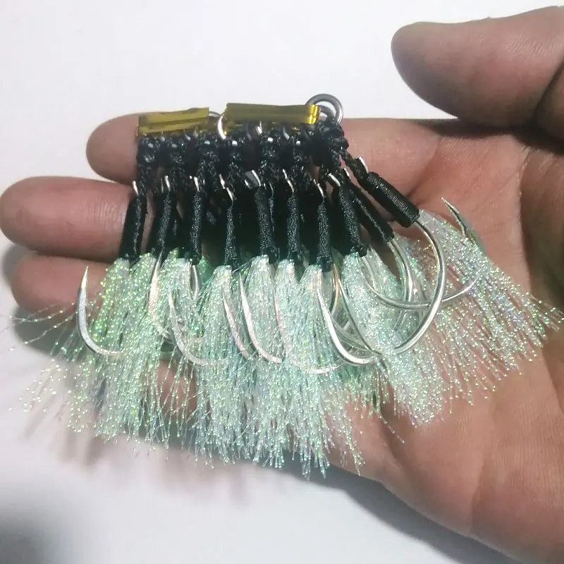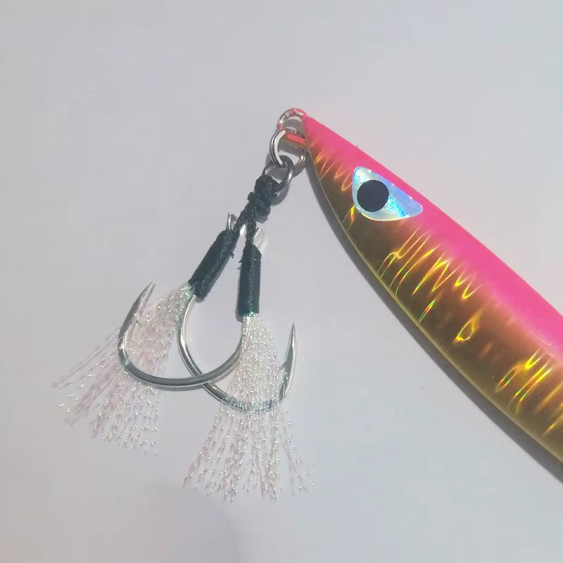 10 pares de anzuelos de asistencia de doble púas, accesorios de señuelo de pesca de acero rico en carbono, anzuelos de señuelo de plantilla, anzuelos de pesca de Jigging lento
