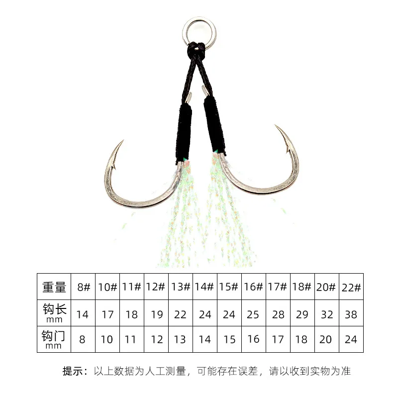10 pares de Señuelos de Pesca anzuelo de ayuda agua de mar Jig de pesca de Jigging lento doble púas Peche pluma gancho de pesca Jig cabeza accesorios de gancho