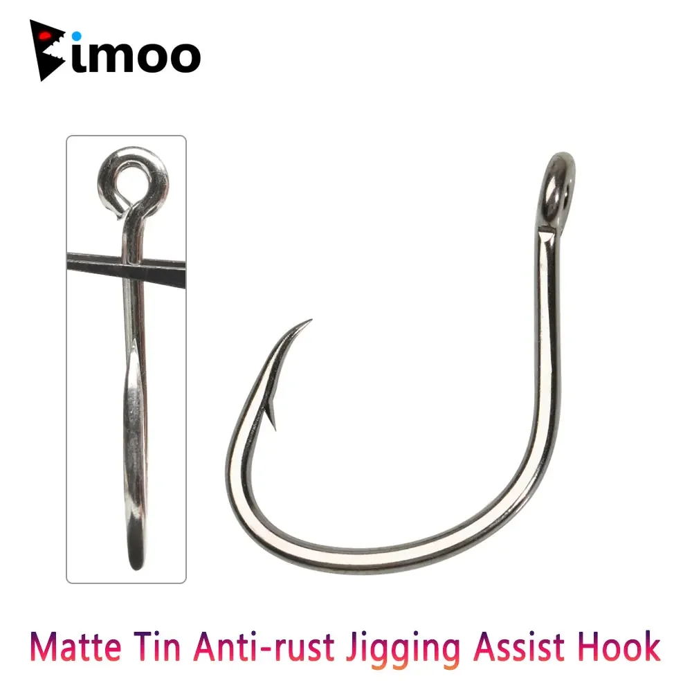 Bimoo 10PCS 1# Anzuelo de asistencia de Jigging antioxidante de estaño mate, anzuelos de agua salada de acero con alto contenido de carbono, anzuelo de señuelo con púas, 1/0 2/0 3/0 4/0 5/0