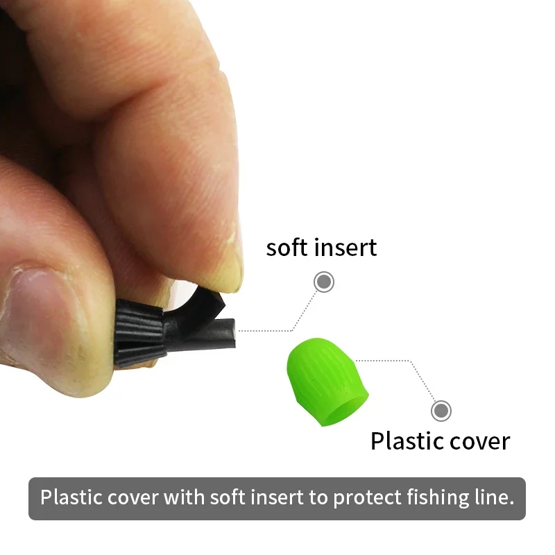Cubierta de plástico con inserto suave para proteger el hilo de pescar.