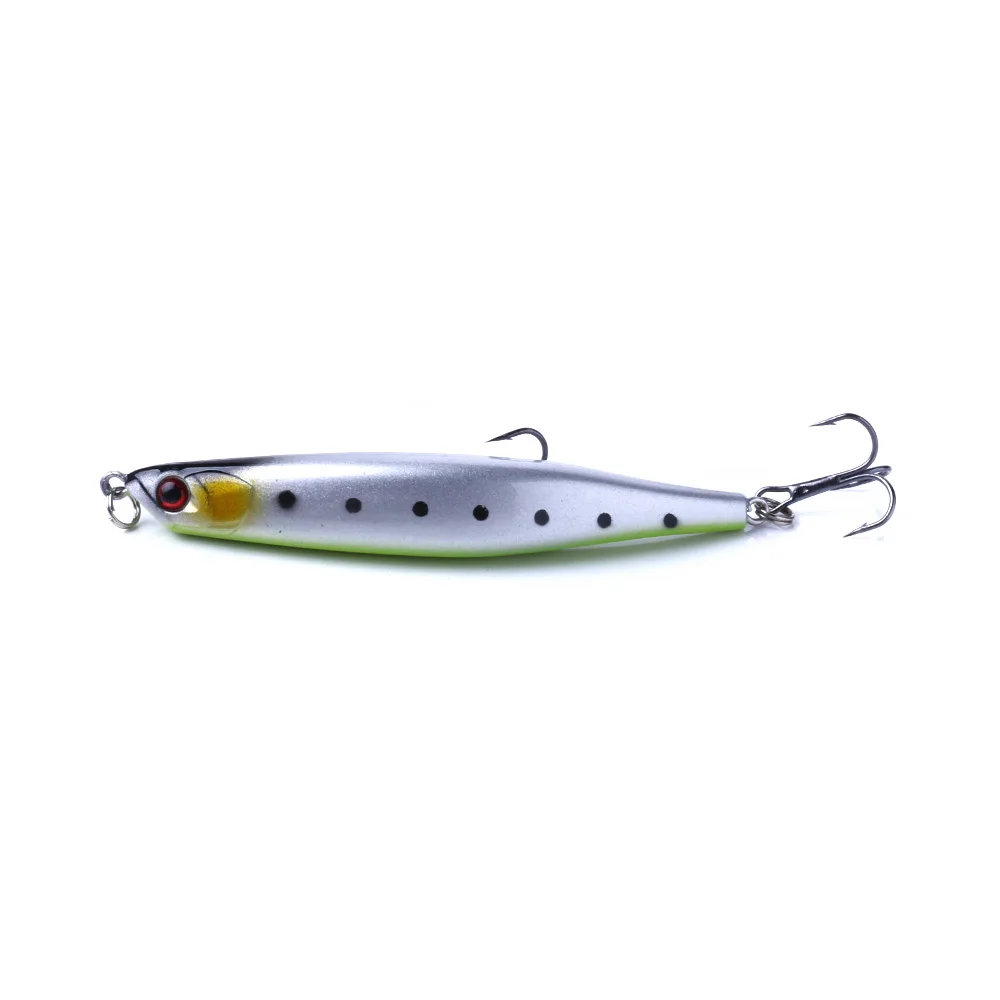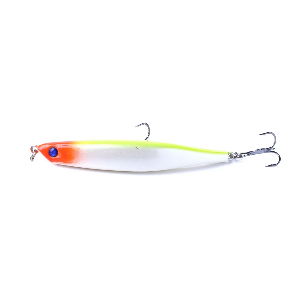 Características:Los ojos 3D lo convierten en la herramienta perfecta para los amantes de la pesca.El cuerpo colorido puede facilitar la captura de peces.Acción realista y rápida en el agua.Excelente efecto visual para atraer peces.Especificaciones:Material: Plástico ABSColor: 10 coloresGancho: 2 anzuelos triplesLongitud del artículo: 9 cmPeso del artículo: 8gPaquete: Bolsa OppLista de Paquetes:1 * señuelo