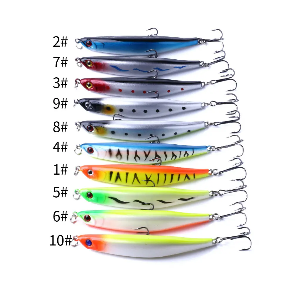 10 Piezas de Señuelos de Pesca Jerkbait Minnow Pencil de 9 cm y 8.2 g, Señuelo Duro # 6 Anzuelos para Lubina, Lucio, Trucha, Perca, Agua Dulce y Salada, Equipo de Pesca