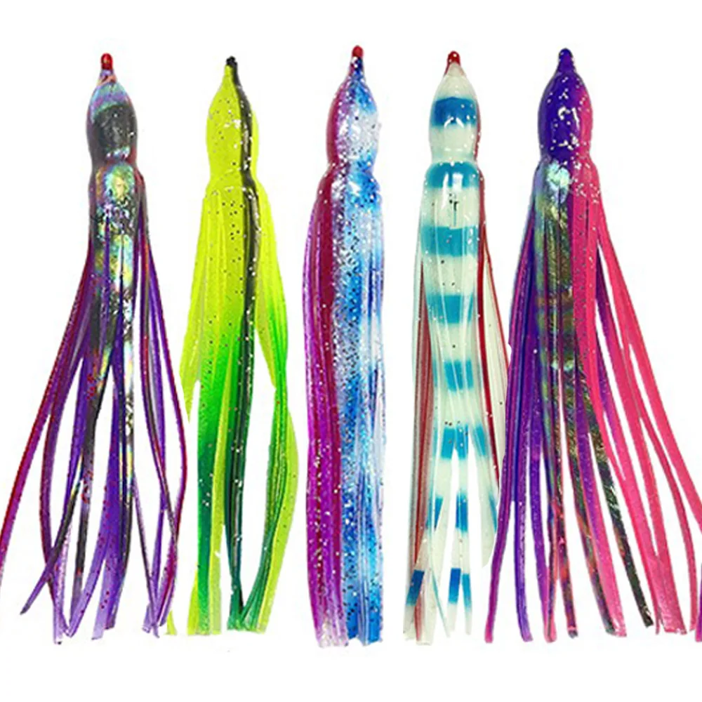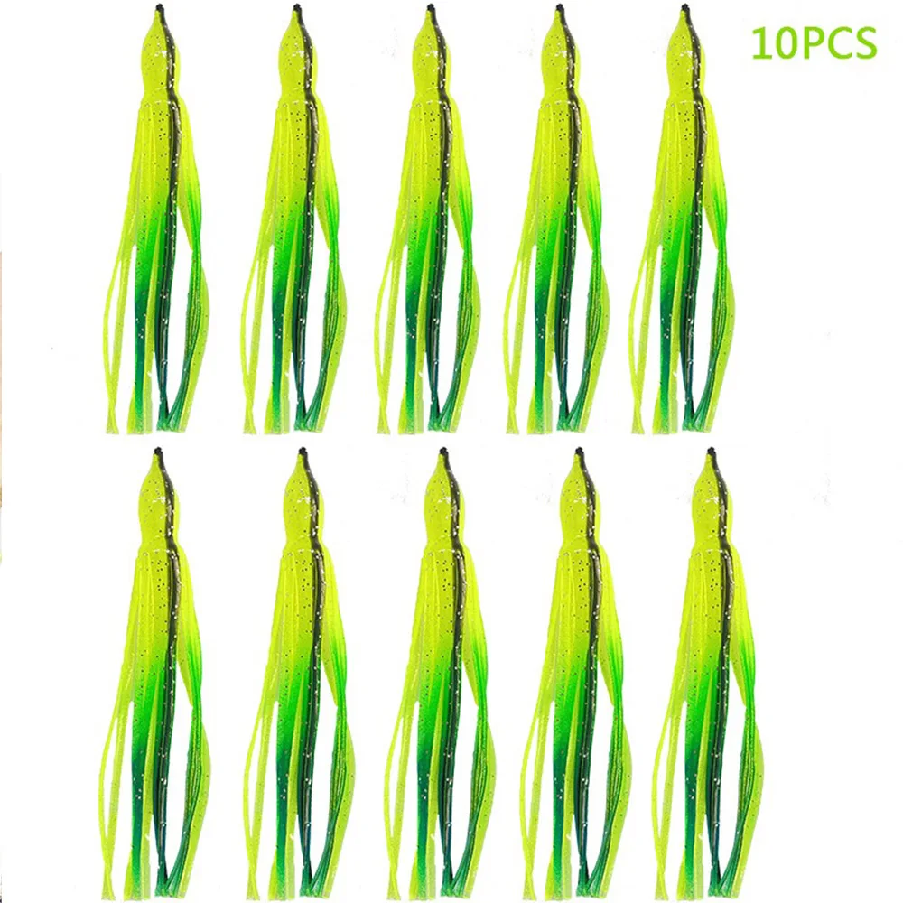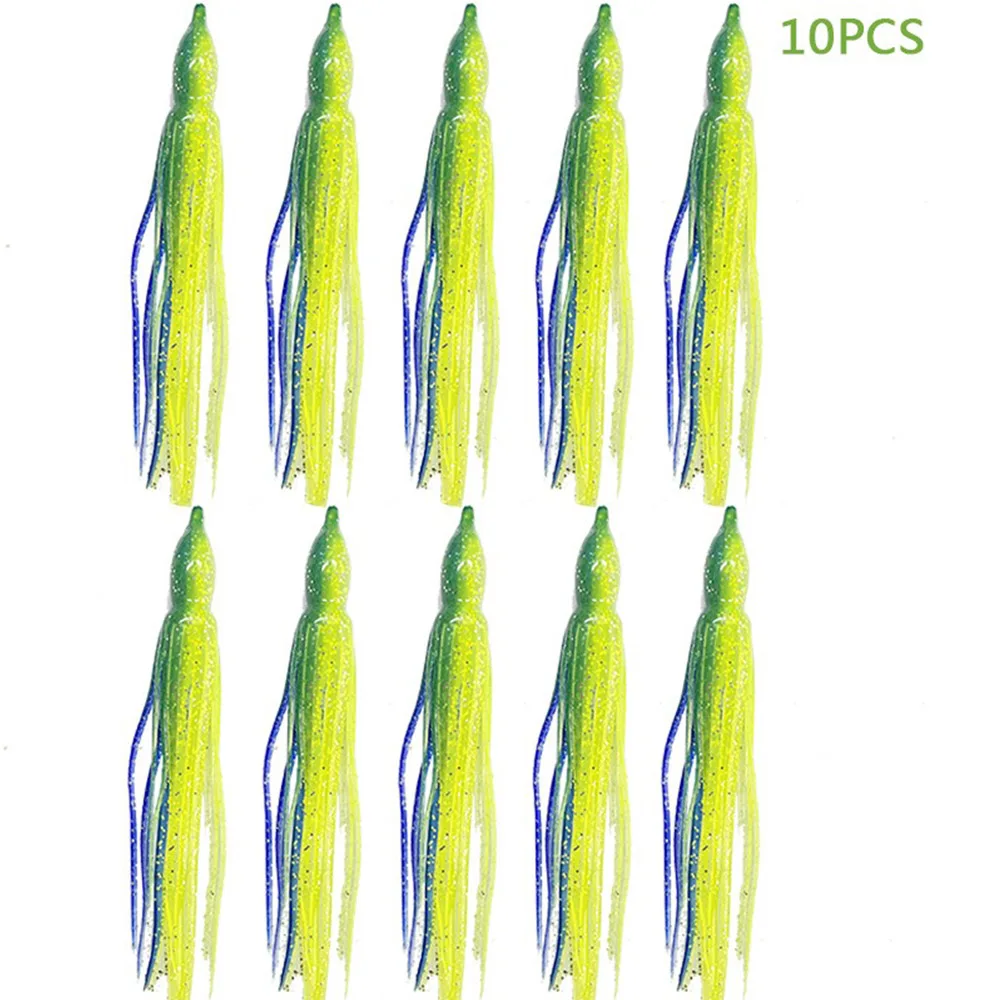 10 Uds 12cm Trolling pulpo Hoochie faldas de calamar Marlin atún Wahoo Pakula reemplazo suave falda aparejada juego grande señuelo de pesca
