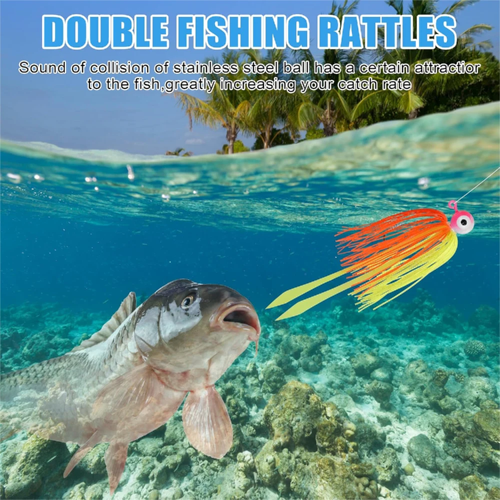 1.Los señuelos para faldas de pesca Spinnerbait están hechos de silicona de alta calidad, suaves y flexibles, con fuerte resistencia al desgaste, capaces de soportar el desgarro violento de peces grandes y reutilizables.