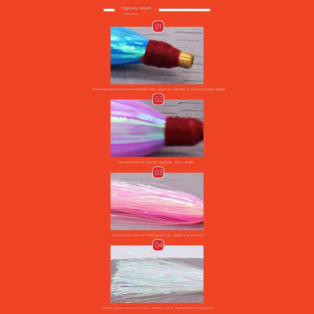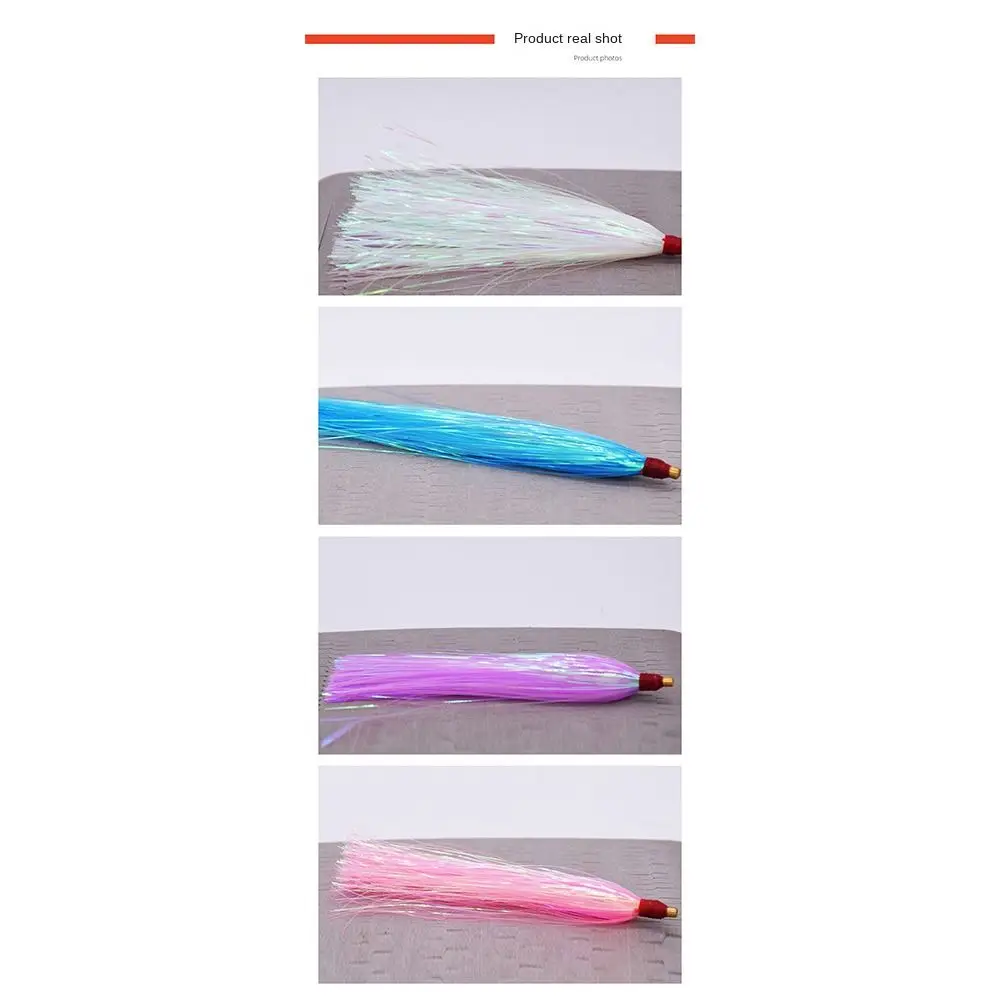 Quantity: 10PCS Model: flash line fishing lure Color: Mix color -Fishing Bucktail Teasers Hooks Saltwater Fishing Lure Bait Flounder Rigs Bucktail jig Mylar Teasers Bottom Fishing High Low Rig. -Effective - Fishing teasers with crystal hair and special pearl flash material with brass tube and hardened rim, holds up well even after multiple strikes, durable for saltwater fishing. -Lifelike - Adopted real wool and mylar flash, with special treatment, provide lively action and dynamic look underwater. -.Easy to Use - Slide the teasers down the line right up to the hook, make a multiple teaser rigs, or a combination with other jigs. -Attractive - Flashing mylar and bright colors attract fish better, great for flounder, seabass and many other species. Package Included: 10pcs Trolling Skirt Fishing Bait