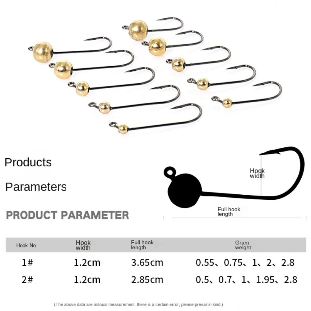 10pcs/lot Micro Jig Head Fishing Hooks 0.5g-4g Copper Head Mini Crank Jig Fishhook Soft Worm Lure Fishing Accessories