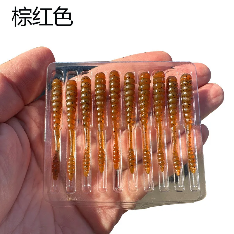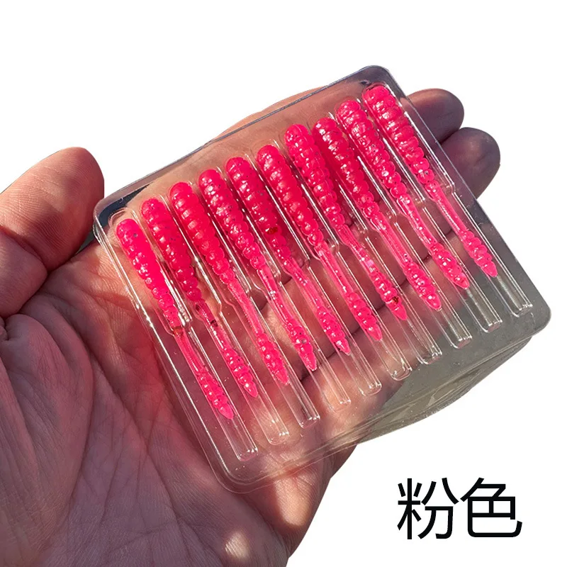 10 Uds 48mm0.5g cebo de gusano cebo suave olor Señuelos de Pesca Pesca carpa pesca lubina señuelo Isca artificial