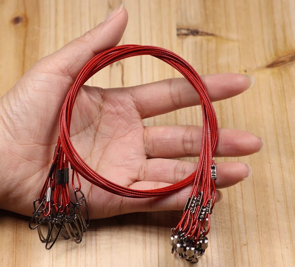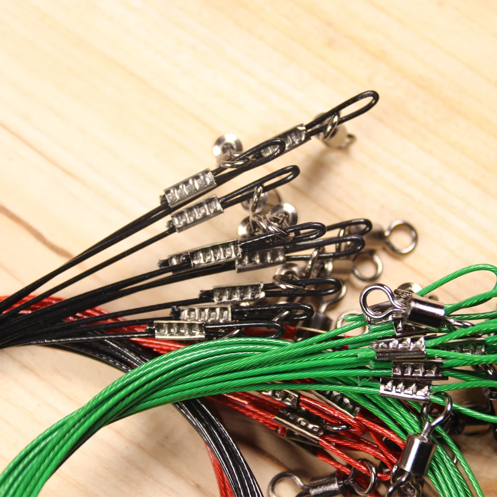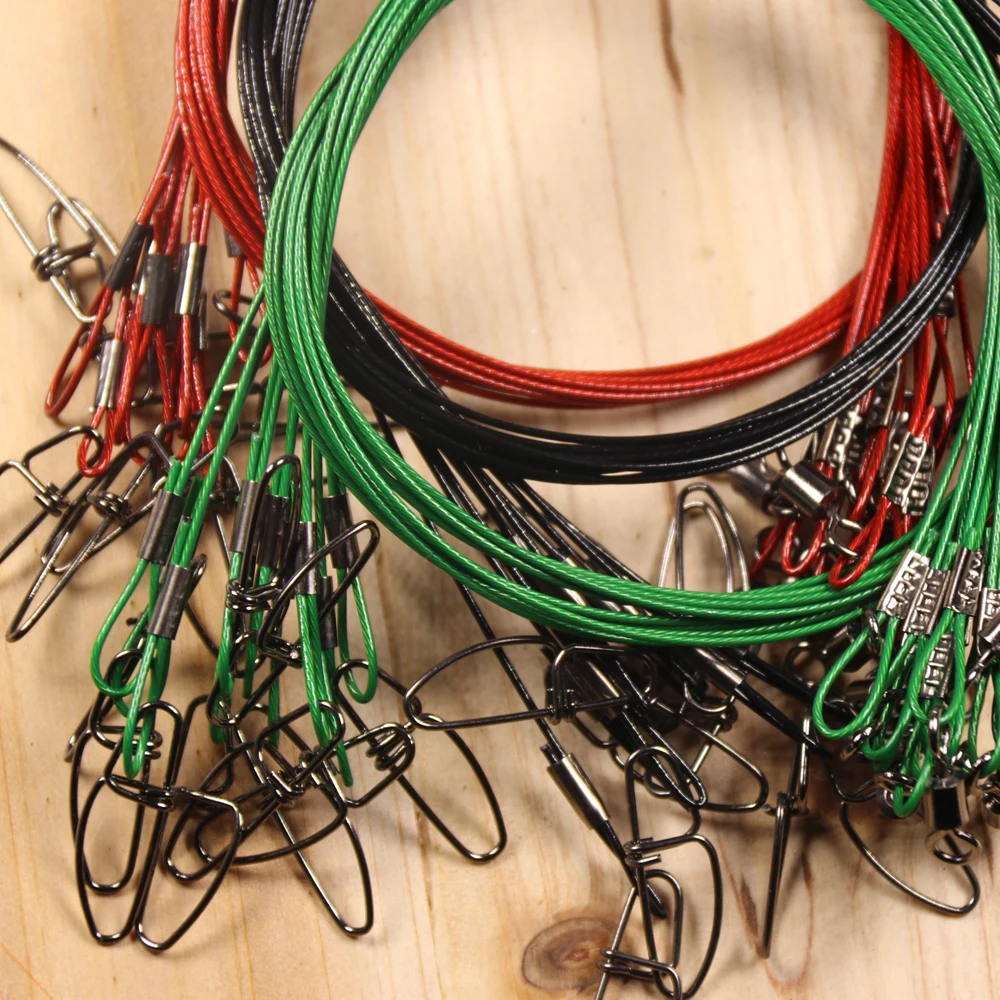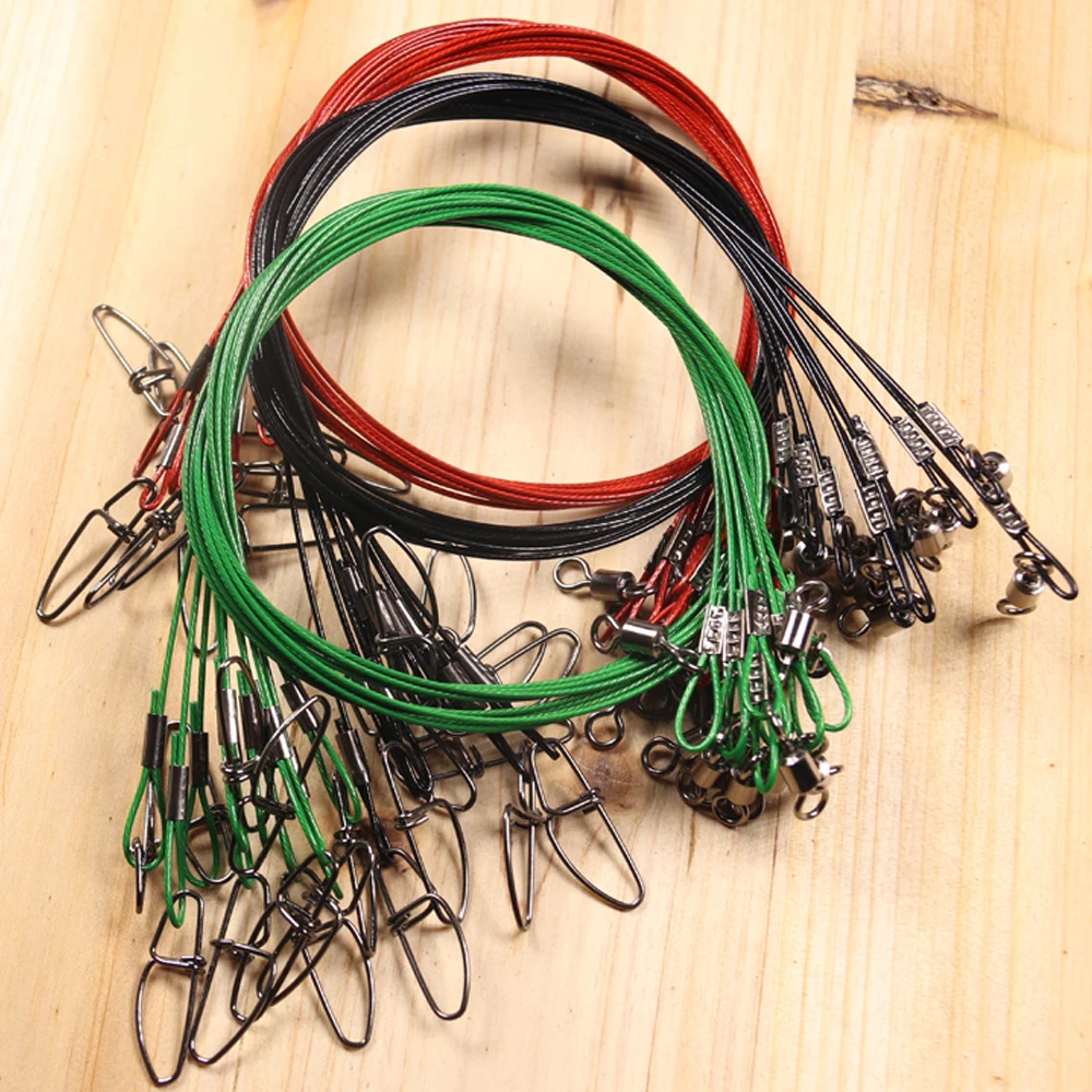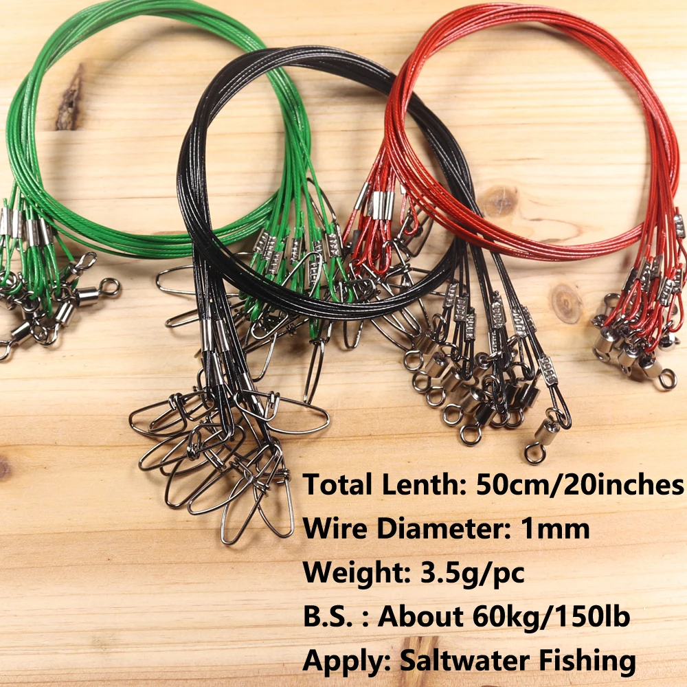 10 piezas de 50cm 150LB de alambre grueso de acero, guía de pesca con señuelo a presión giratorio, Conector de gancho de plantilla, accesorios de pesca de agua salada