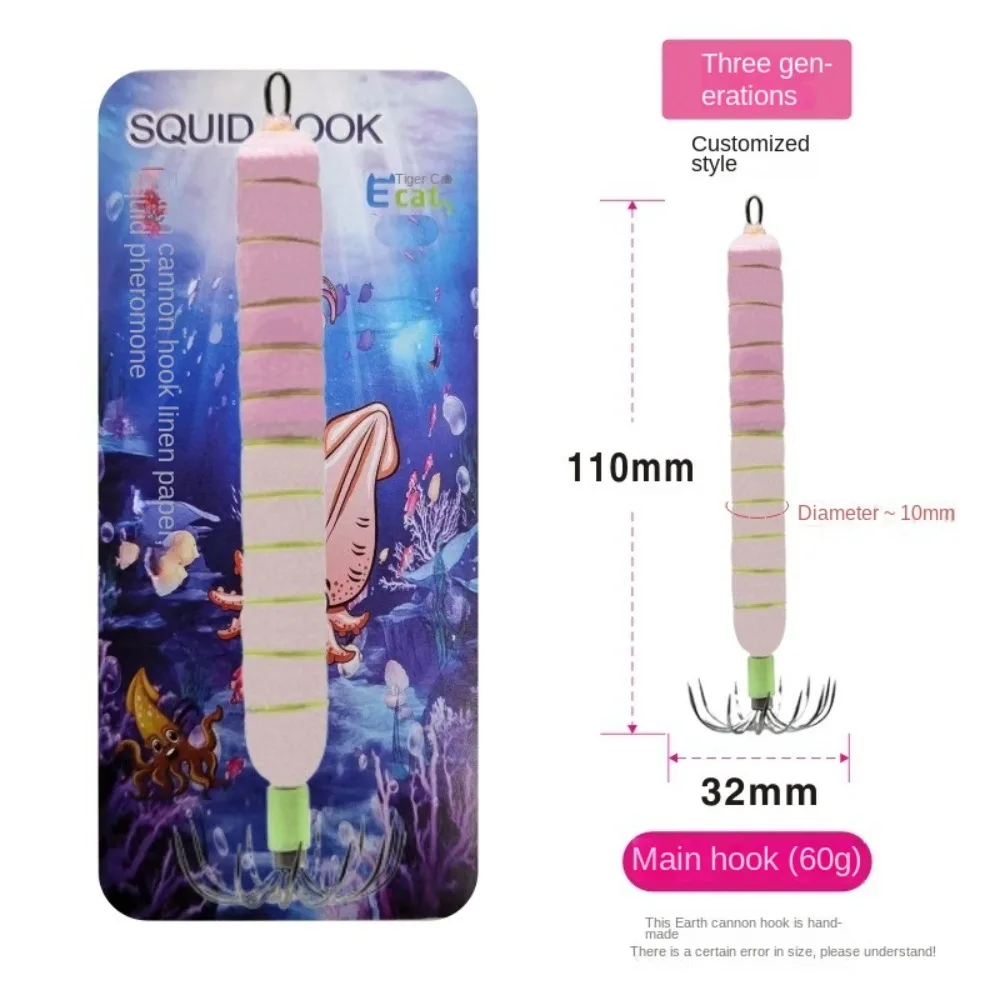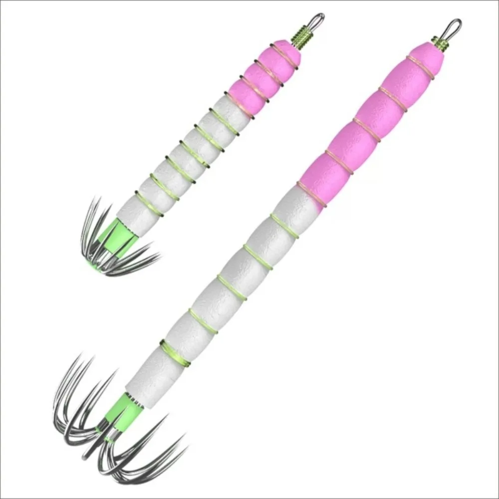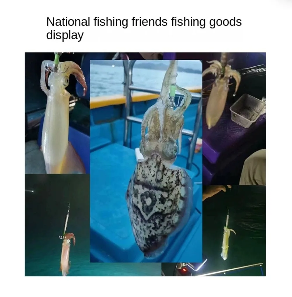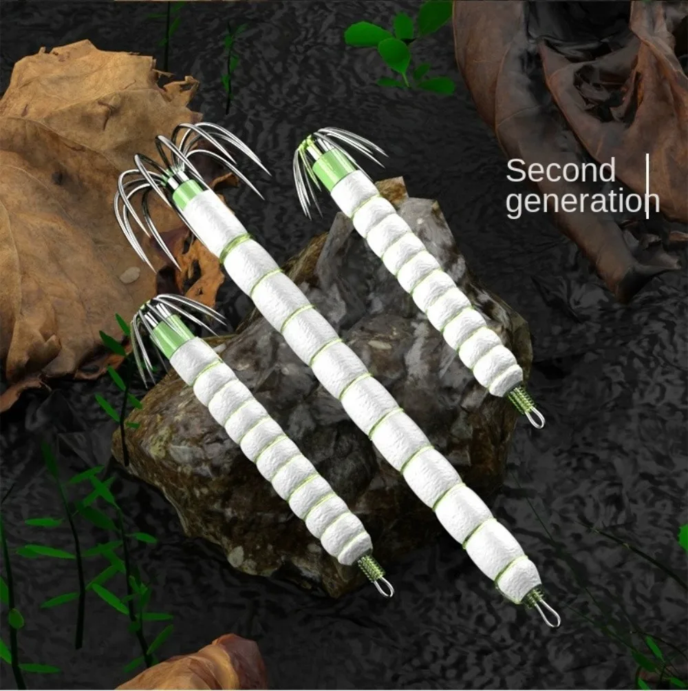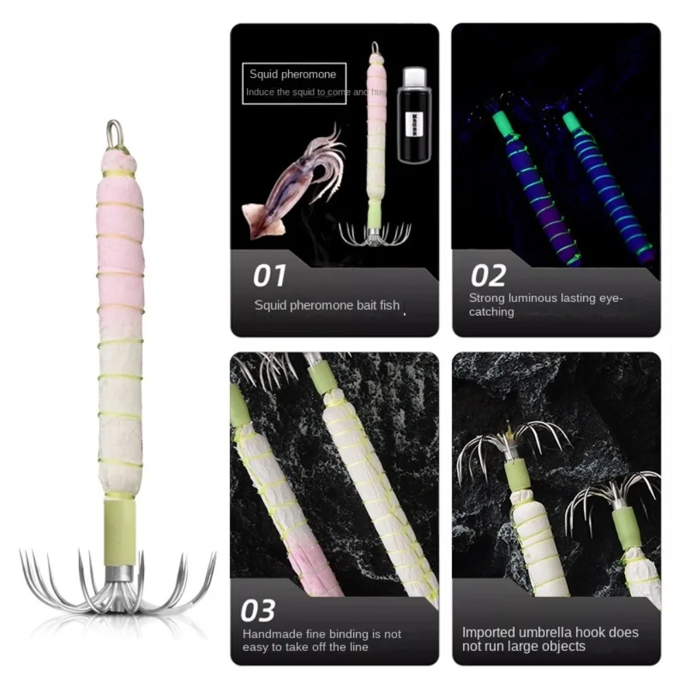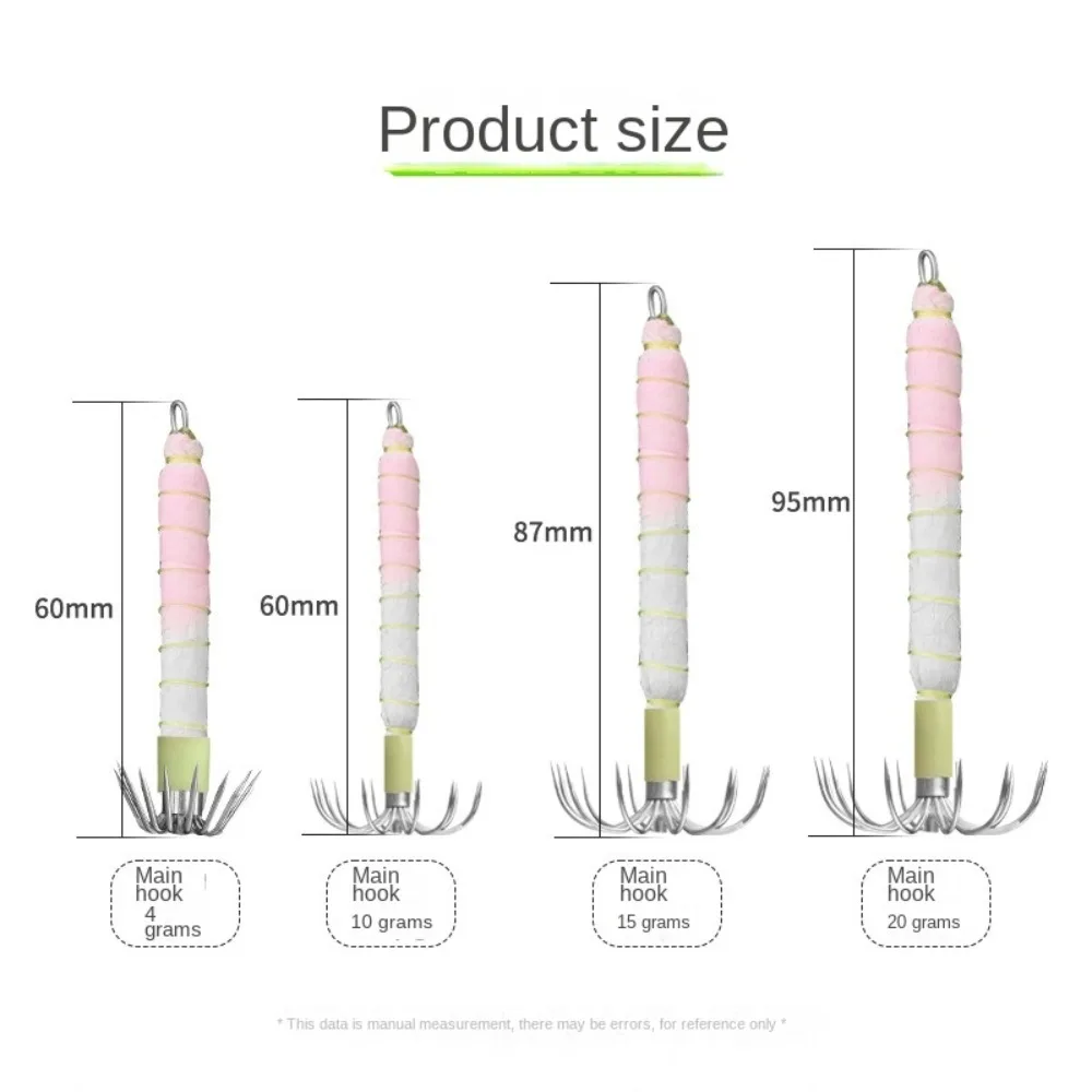 -Este anzuelo de calamar utiliza un diseño de 8 ganchos, en forma de paraguas.