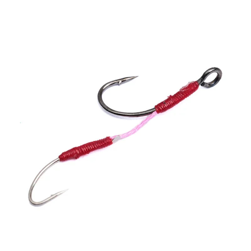 Descripción :10 Uds. Gancho doble de pesca de acero al carbono ojo grande gancho único anzuelos de pesca con mosca cuchara farpada señuelo con mango de gancho de tubo de púas